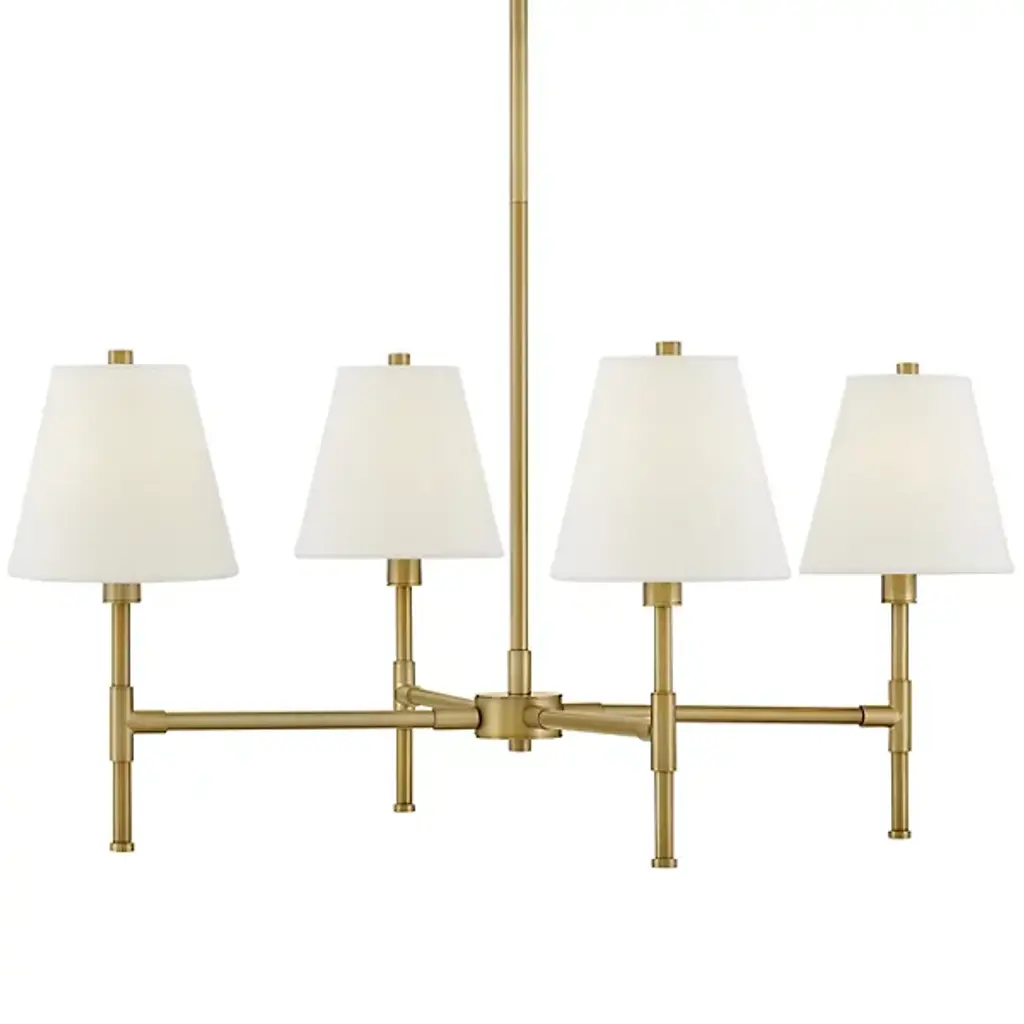 Straight edges and ornate candlestick detailing layers of drama to the Abbie 6-Light Island. The finish brings a contemporary nod to this updated design. One light, two ways--this fixture can be styled with or without the included shades. APPLICATIONS: Perfect for use in the kitchen or dining room. Torch style candle lamps are held by solid ringed arms in the iconic design with white fabric stay-straight shades EASY TO INSTALL: Replacing an existing fixture is easy with the included instructions and can be finished in as little as 15 minutes with a few simple hand tools. VERSATILE: Dimmable and LED/CFL/Incandescent compatible, uses six 60-Watt (max) E12 candelabra base bulbs (Not Included) DIMENSIONS: Adjustable Height (from 30 inch to 80 inch), 48 inchW x 25 inchH x 24 inchE; includes 1' of chain, 10' of wire and one each 6 inch, 12 inch and 18 inch removable rods RELIABLE: Includes 1-Year Limited Manufacturer's Warranty. Warranty: 1 Year Room Recommendation: Dining Room/Kitchen No