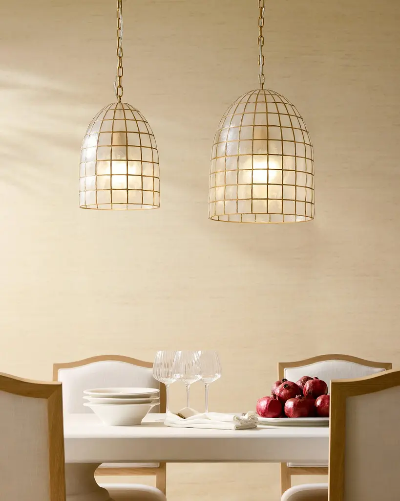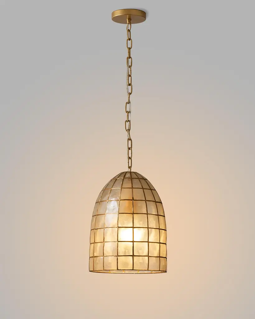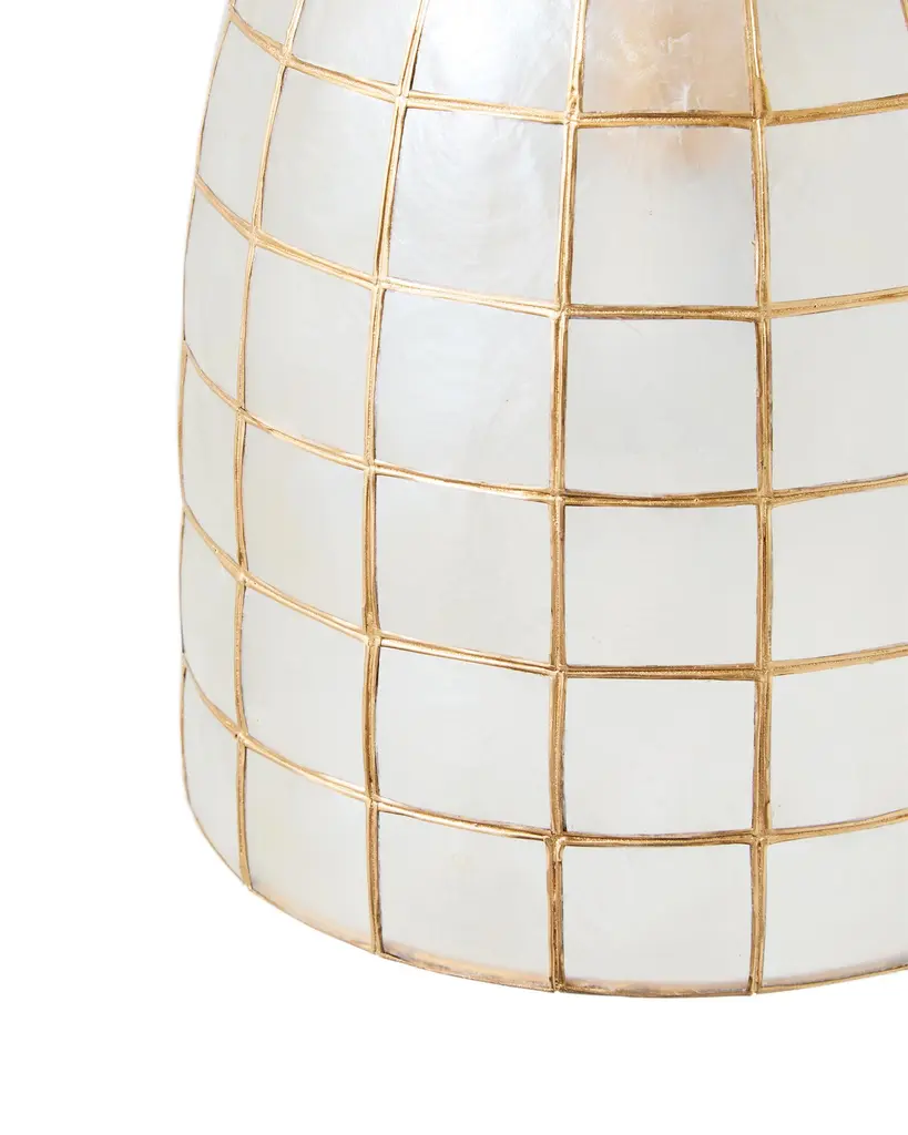 Lustrous Capiz shells create soft, luminous light. A mosiac of tiles and the glimmer of antique gold.