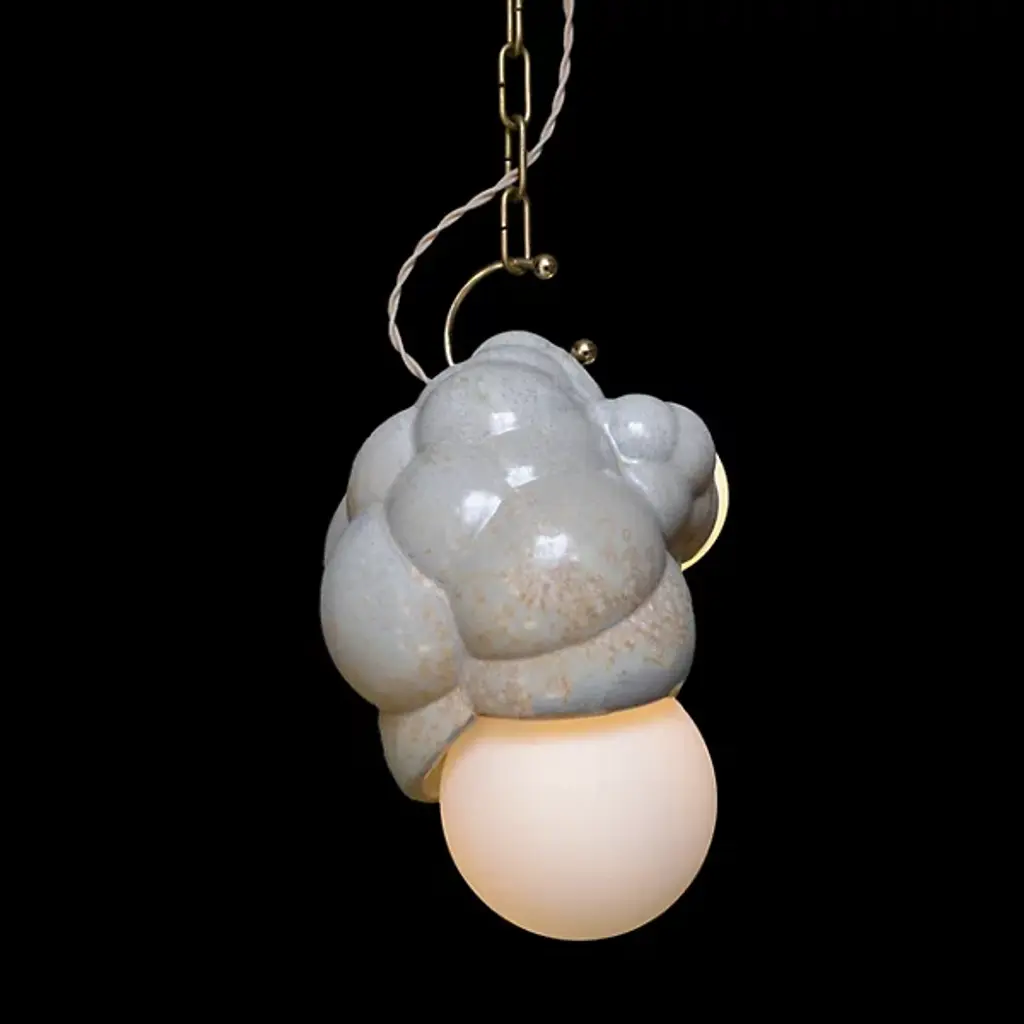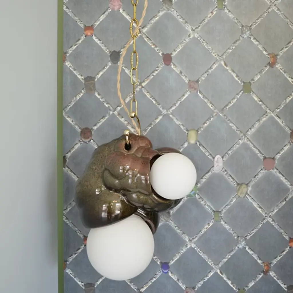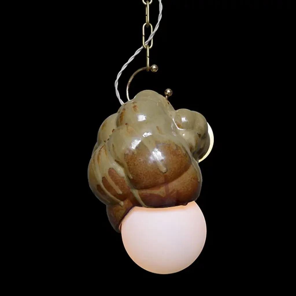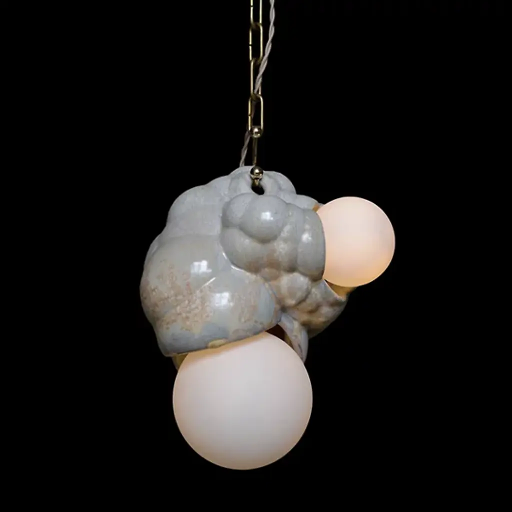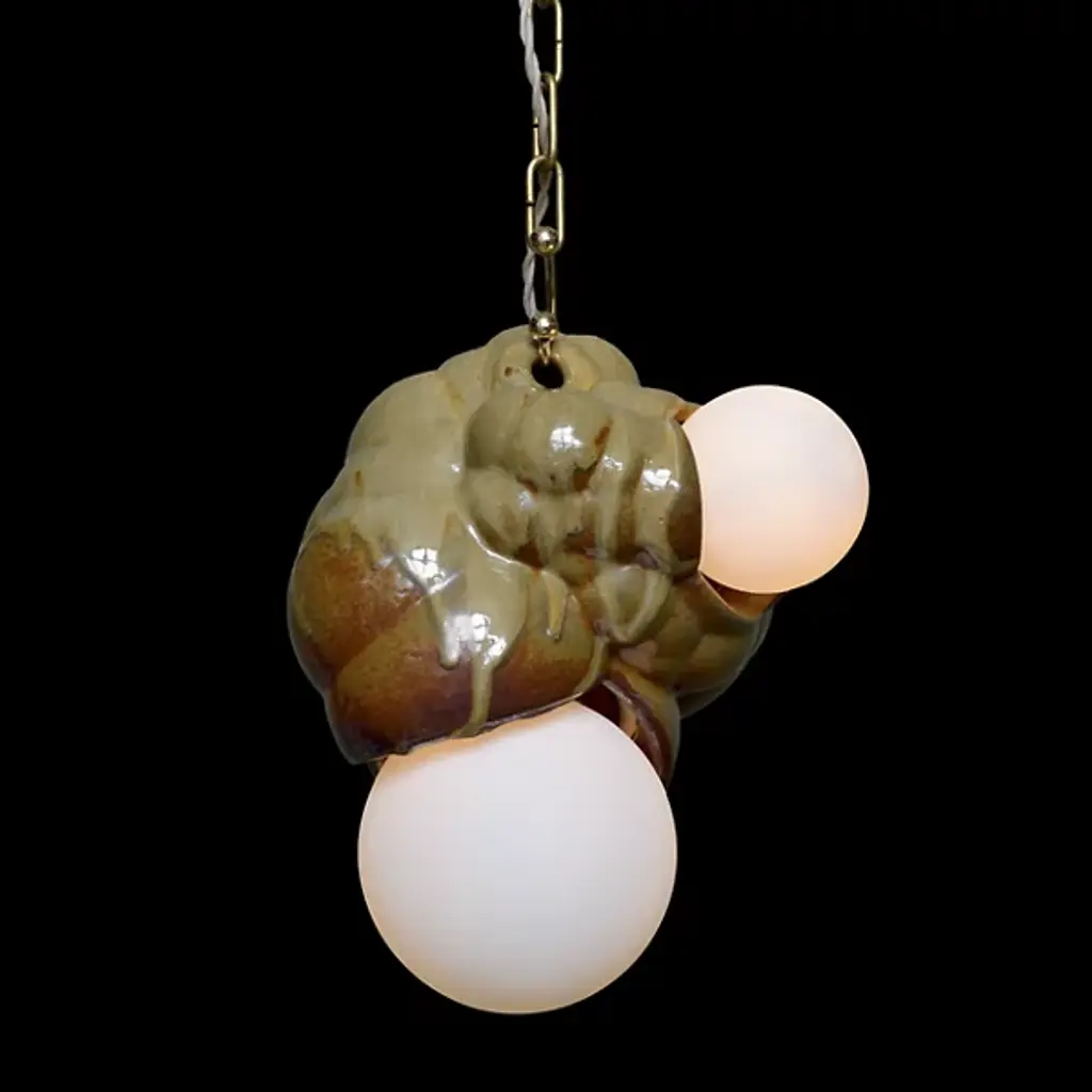 The Capullo Pendant from Forma Rosa Studio is a striking, handcrafted ceramic design inspired by the delicate cocoon structures of insects—its name, “Capullo,” meaning cocoon. Two mouthblown glass globes create a soft, luminous glow, while the sculptural form feels organic and expressive. A distinctive hanging ring, reminiscent of a piercing, adds a modern edge and enhances its fleshy, natural silhouette. Artistic and unique, this pendant brings both elegance and intrigue to any space.