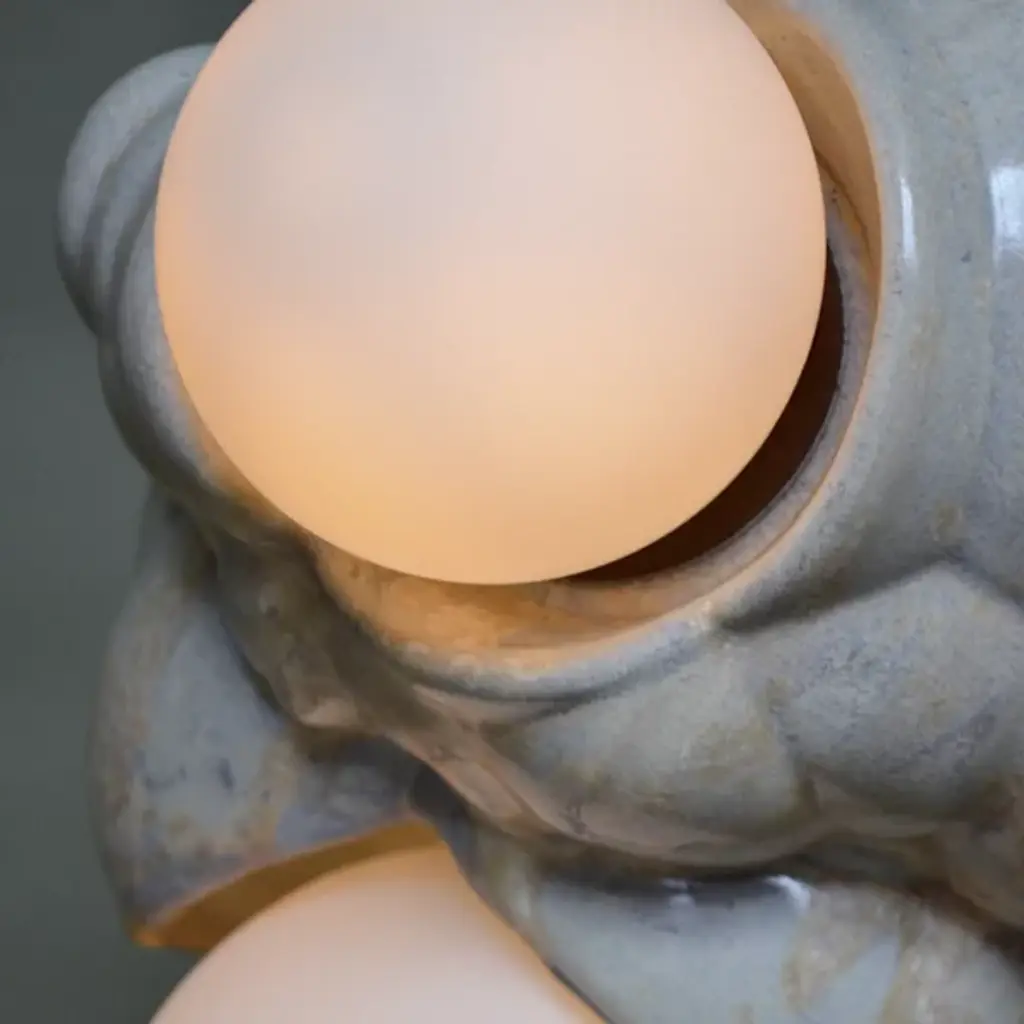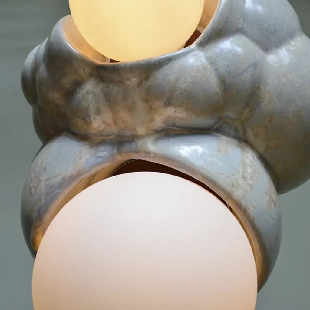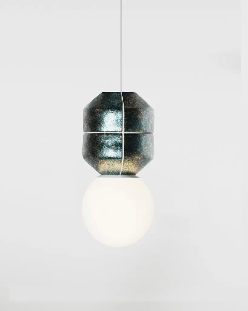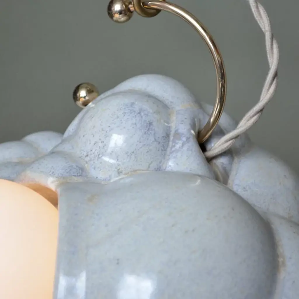 The Capullo Pendant from Forma Rosa Studio is a striking, handcrafted ceramic design inspired by the delicate cocoon structures of insects—its name, “Capullo,” meaning cocoon. Two mouthblown glass globes create a soft, luminous glow, while the sculptural form feels organic and expressive. A distinctive hanging ring, reminiscent of a piercing, adds a modern edge and enhances its fleshy, natural silhouette. Artistic and unique, this pendant brings both elegance and intrigue to any space.