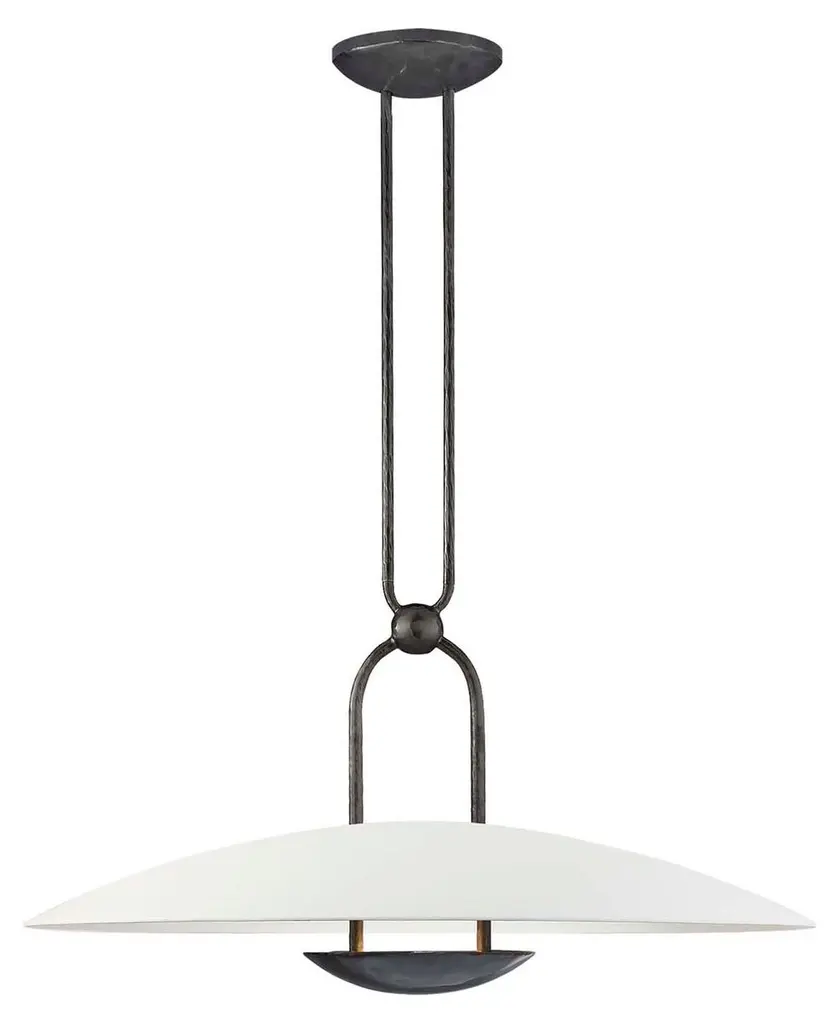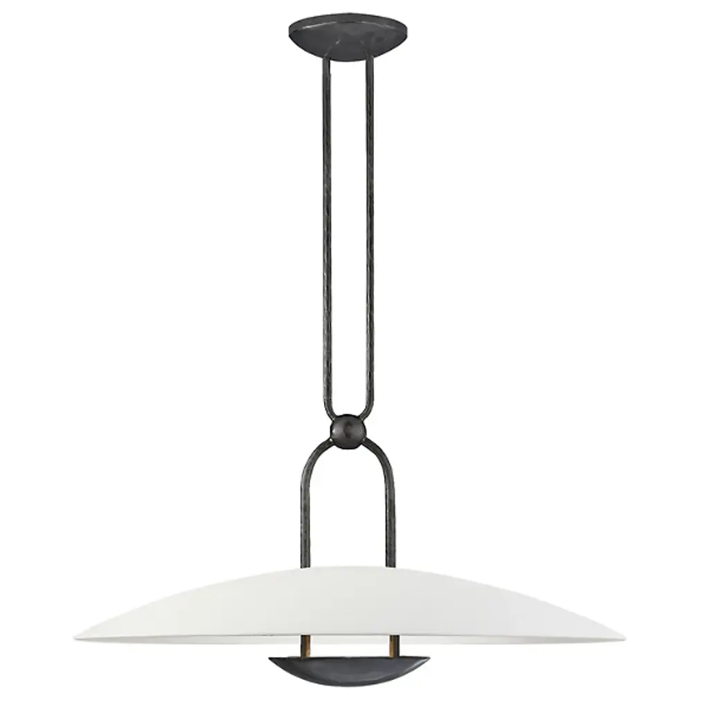 A sleek, sculptural frame is gracefully intersected by a white plaster shade in an etched crystal finish on this modern pendant. We love it in the entryway or perched above a dining table. Hardwired.