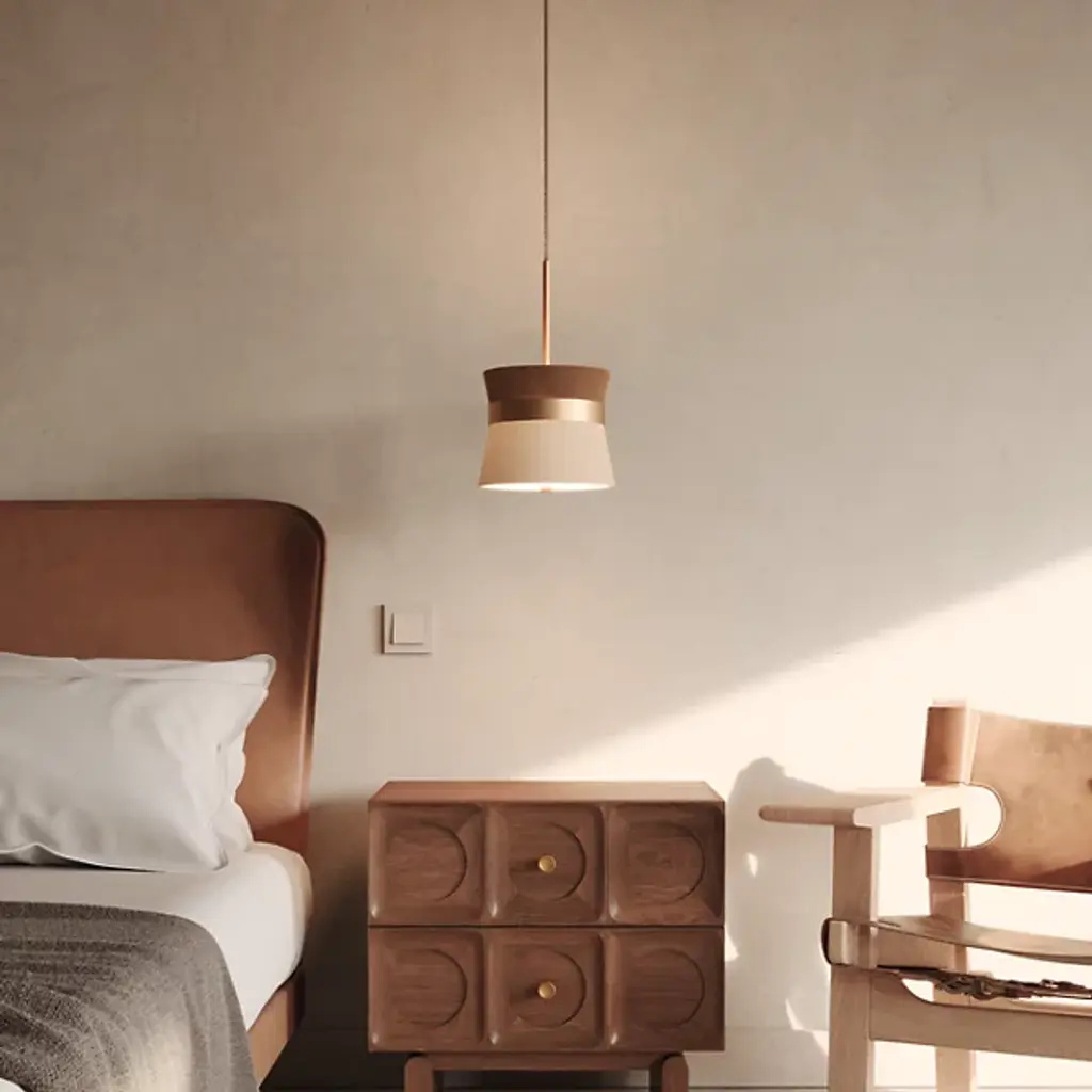 The Caramelo Pendant from Carpyen Easy Light blends contemporary and mid-century modern styles, becoming a versatile part of your décor. This pendant is nicely tapered and cylindrically shaped. It is composed of durable metal and has elegant banding in the middle, creating visual intrigue. The shade is composed of UV-resistant, fireproof fabric, making it highly resilient. This fixture is made in Span and is expertly crafted, letting brilliant LED illuminate your environment with ease.