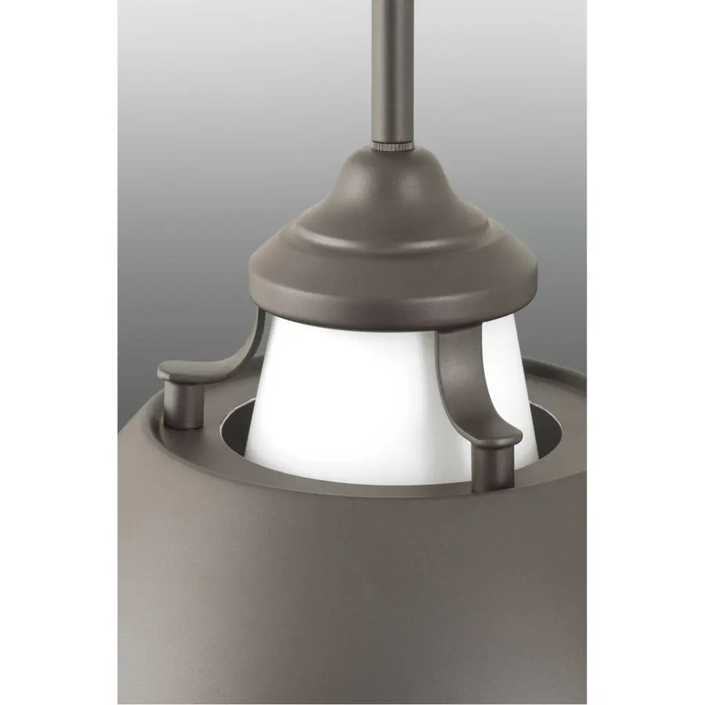 Light spills out onto Carbon's domed metal shade, from a tapered glass diffuser. Inside surface of metal shade has gloss white finish for maximum illuminations. This mini-pendant is finished in a Graphite finish.