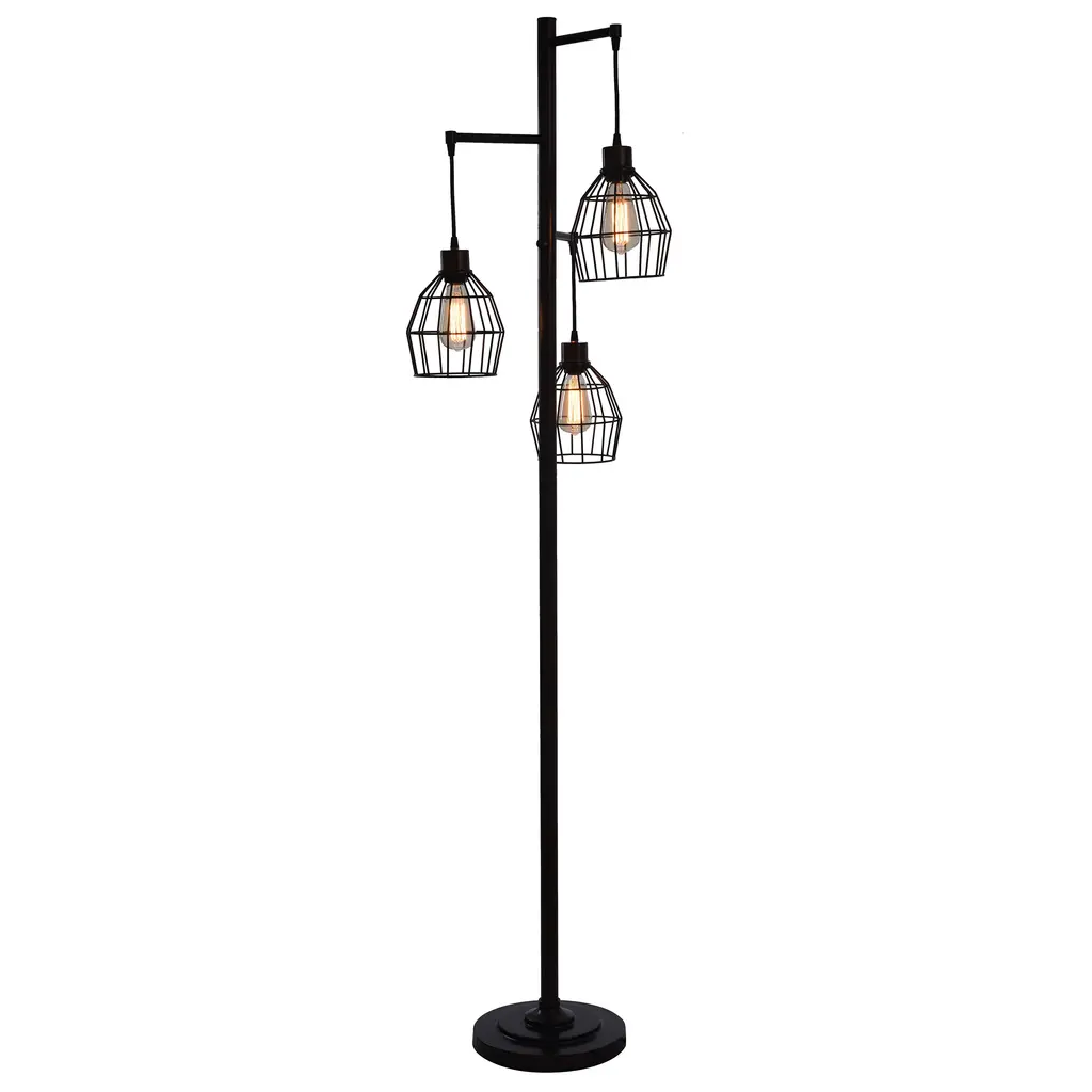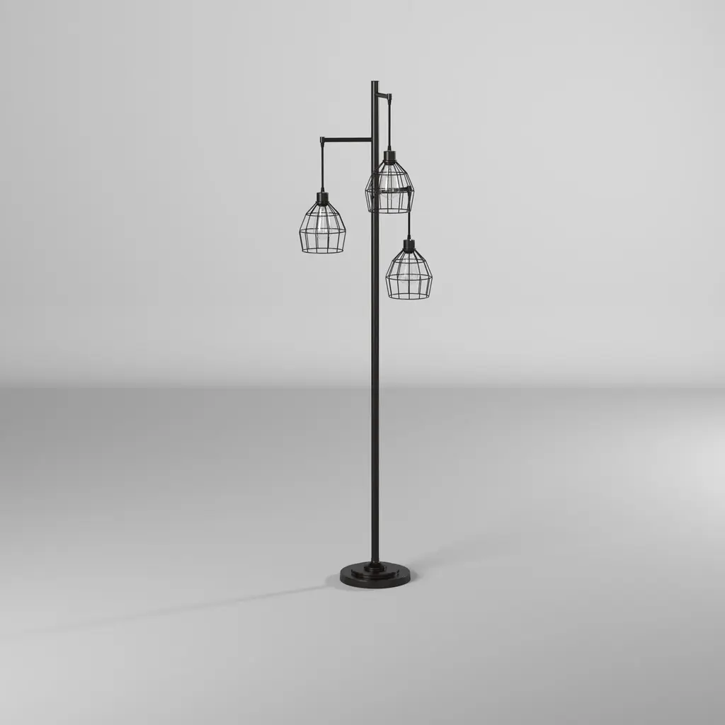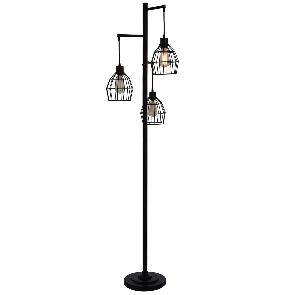 Carbon Loft Memnet 3-Light Caged Wire Pendant Floor Lamp - Black