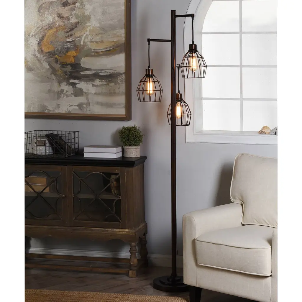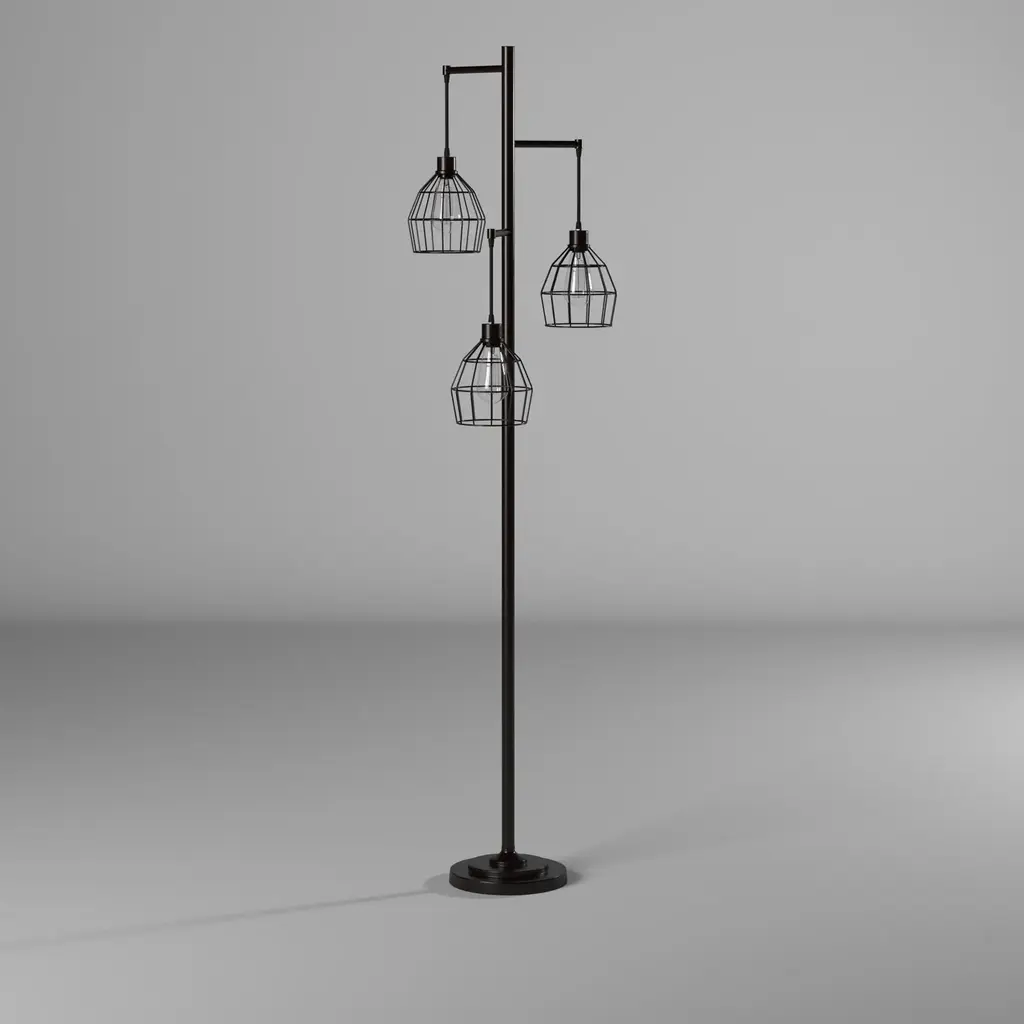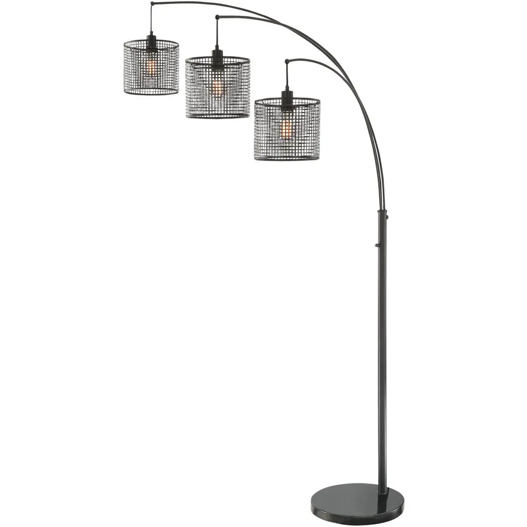 Carbon Loft Memnet 3-Light Caged Wire Pendant Floor Lamp - Black