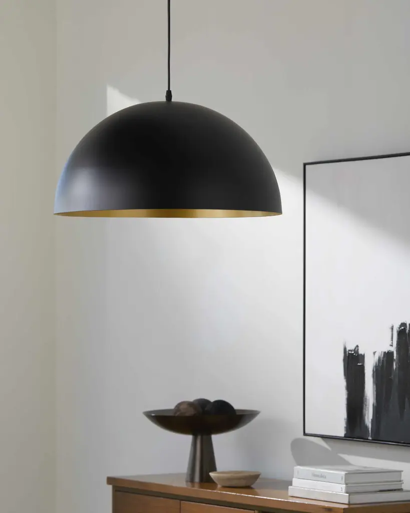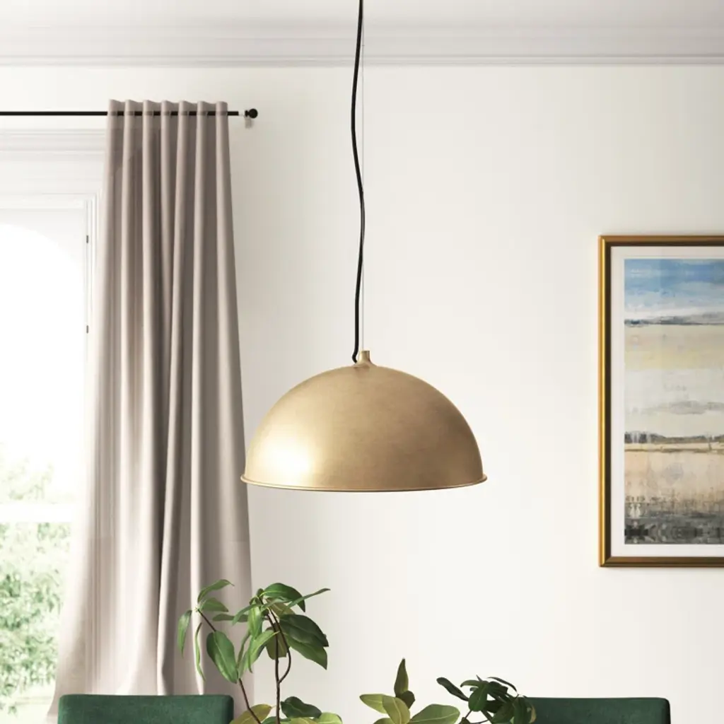 This single-light pendant instantly adds a modern vibe to your dining area or bedroom with its minimal design. It features a luminous iron dome over one (included) LED bulb for an ambient glow. We love that this hard-wired fixture hangs from an adjustable cord, letting you choose the right height for your space. Plus, it's compatible with a sloped ceiling adapter. Style this pendant solo, or pair it with another for a curated look over your kitchen island.