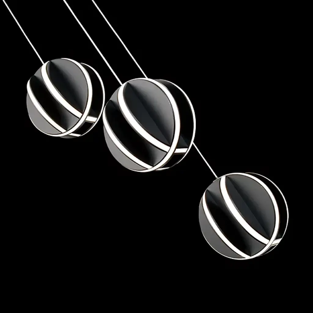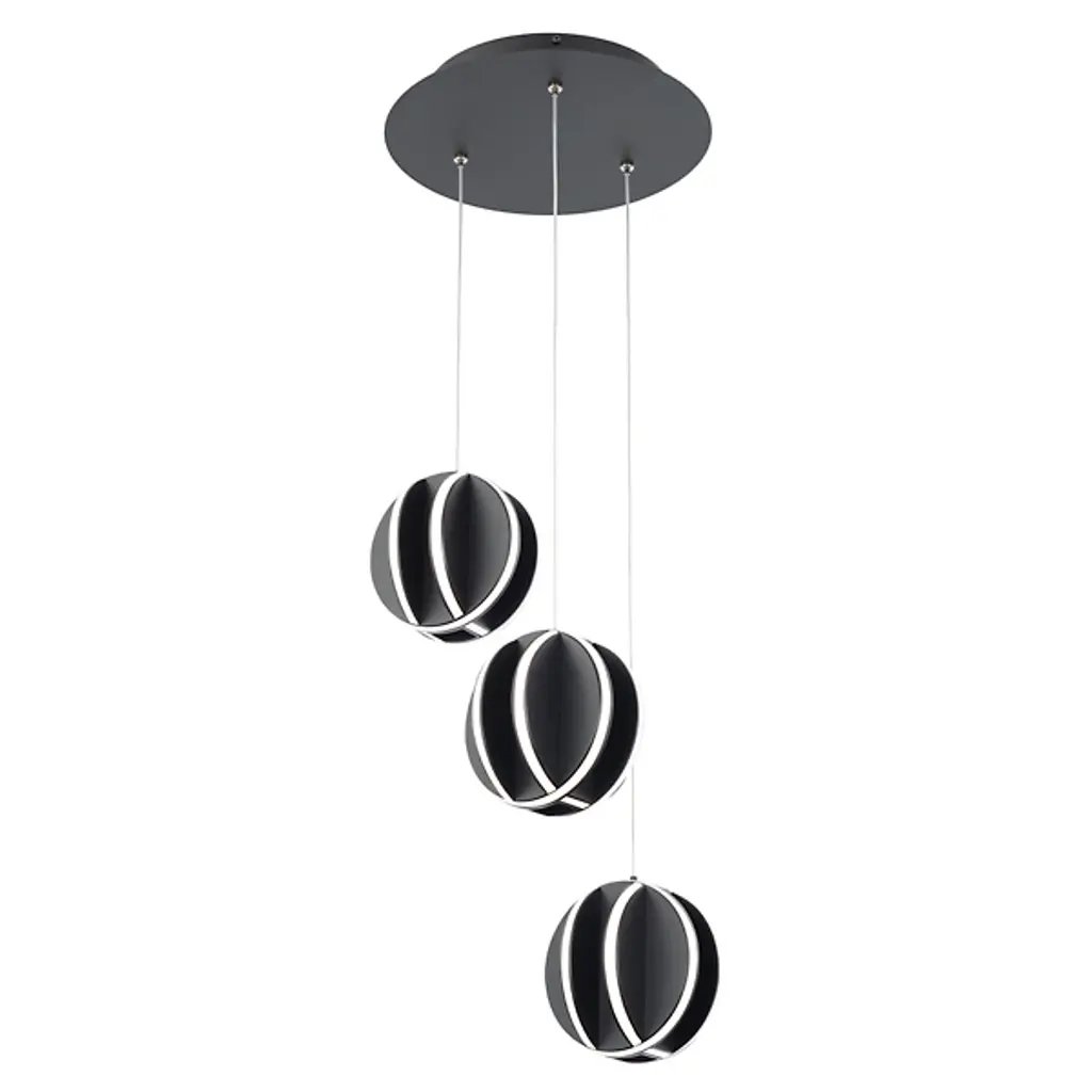 The Carillion LED Multi-Light Pendant from Modern Forms elevates its surroundings with a daring, playful appeal, descending from a circular canopy via a series of slender wires. Three sphere shapes are fashioned from cross-hatched aluminum discs, setting LED lamping inside narrow bays relieved by curving silicone diffusers. The light extends evenly from all angles, adding an inspired intrigue and touches of shadow to the clean-surfaced metal, leaving an inspired, lasting presence.