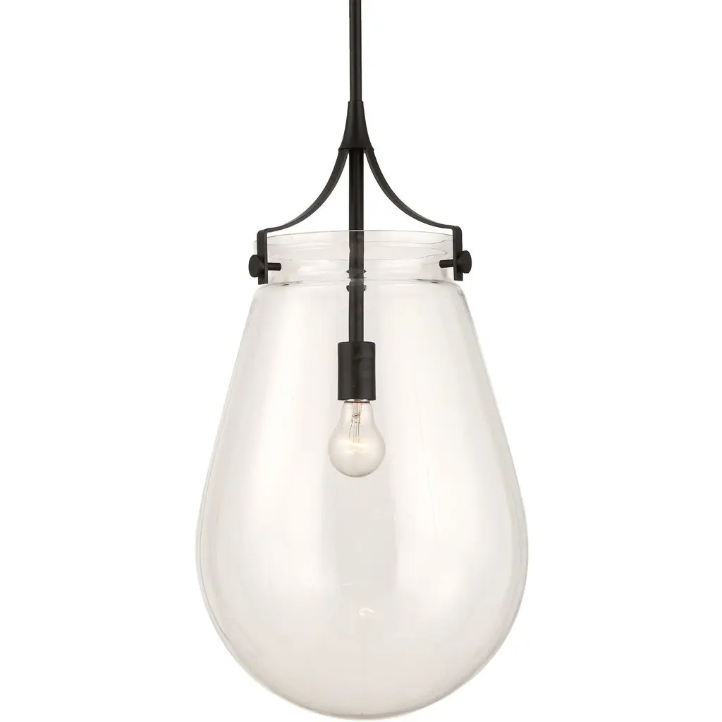 The Carillon Pendant commands attention with its impressive scale and gleaming surface. An impressive clear bell-shaped glass shade surrounds a white opal diffuser suspended by hardware finished in crisp Matte Black, creating a warm and inviting ambiance.This versatile pendant is slope ceiling adaptable and stem hung with several lengths of stem included, allowing for easy customization for your home's ceiling requirements.