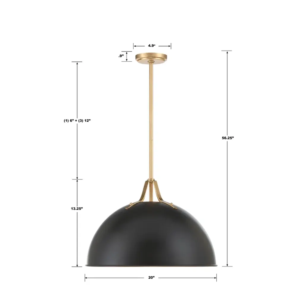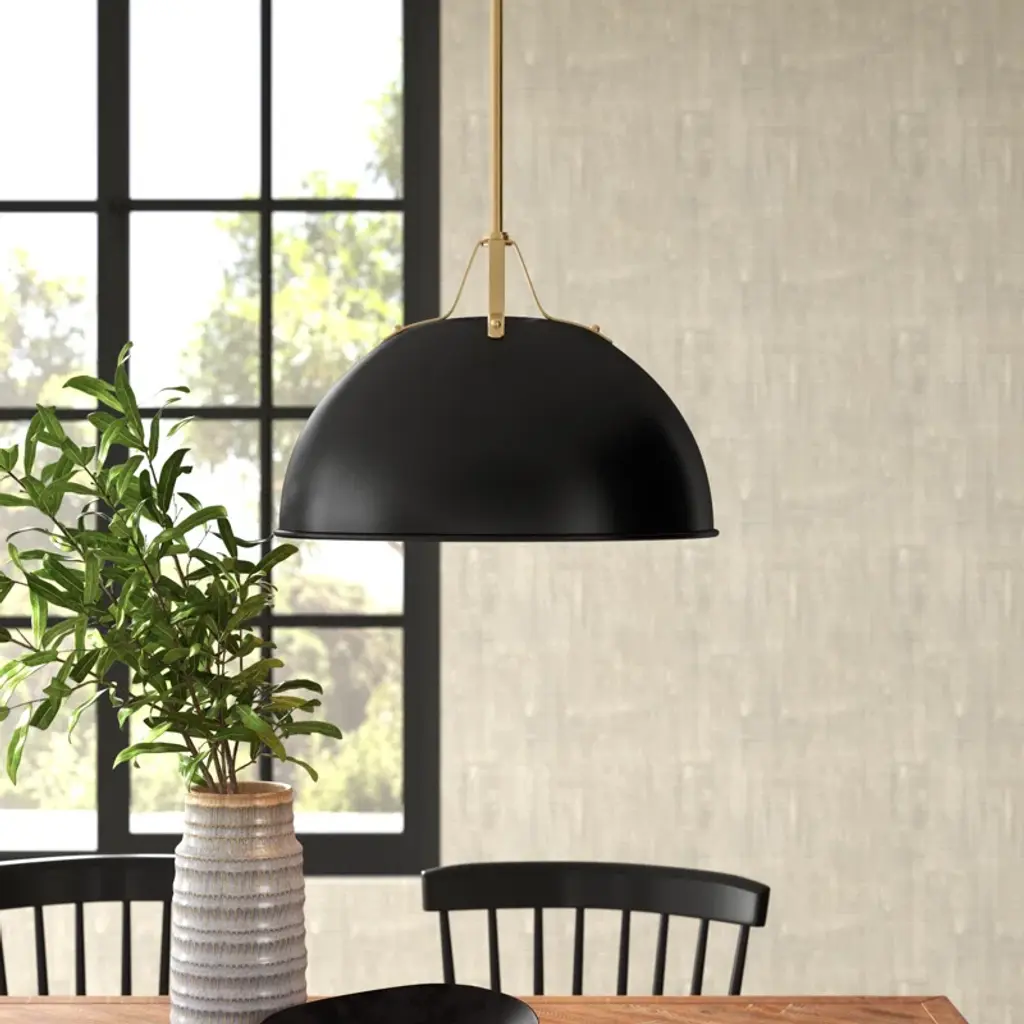 A large dome metal shade presents a clean and streamlined silhouette for our Carlisa collection. This sculptural one-light pendant is available in matte black or matte white. This industrial meets modern farmhouse design shines direct light downwards into your space, making it a perfect choice when hung over a breakfast nook or in pairs over a kitchen island.