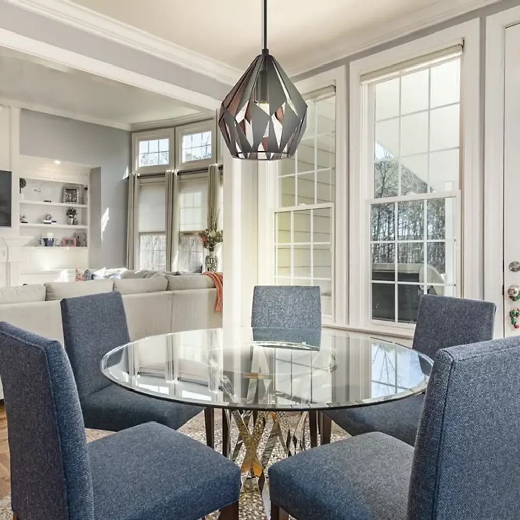 A stylish conversation piece for any space. The Carlton 3 Mini Pendant by Eglo is a beautifully-designed fixture that would bring enhanced clarity and modern beauty to a kitchen or foyer. Its metal craftsmanship is finished in matte black, while each interior finish option offers its own striking, upscale contrast. For added functionality, this pendant is height-adjustable and dimmable (dimmer not included).