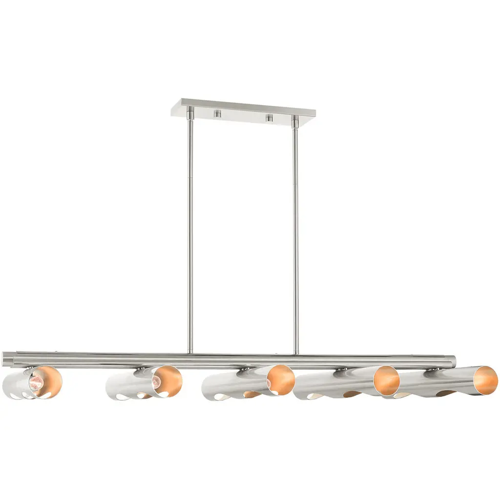 Corona Linear Suspension-0B-Novel Brass-Light Glass Cylinder-Stainless Steel Cable-LED