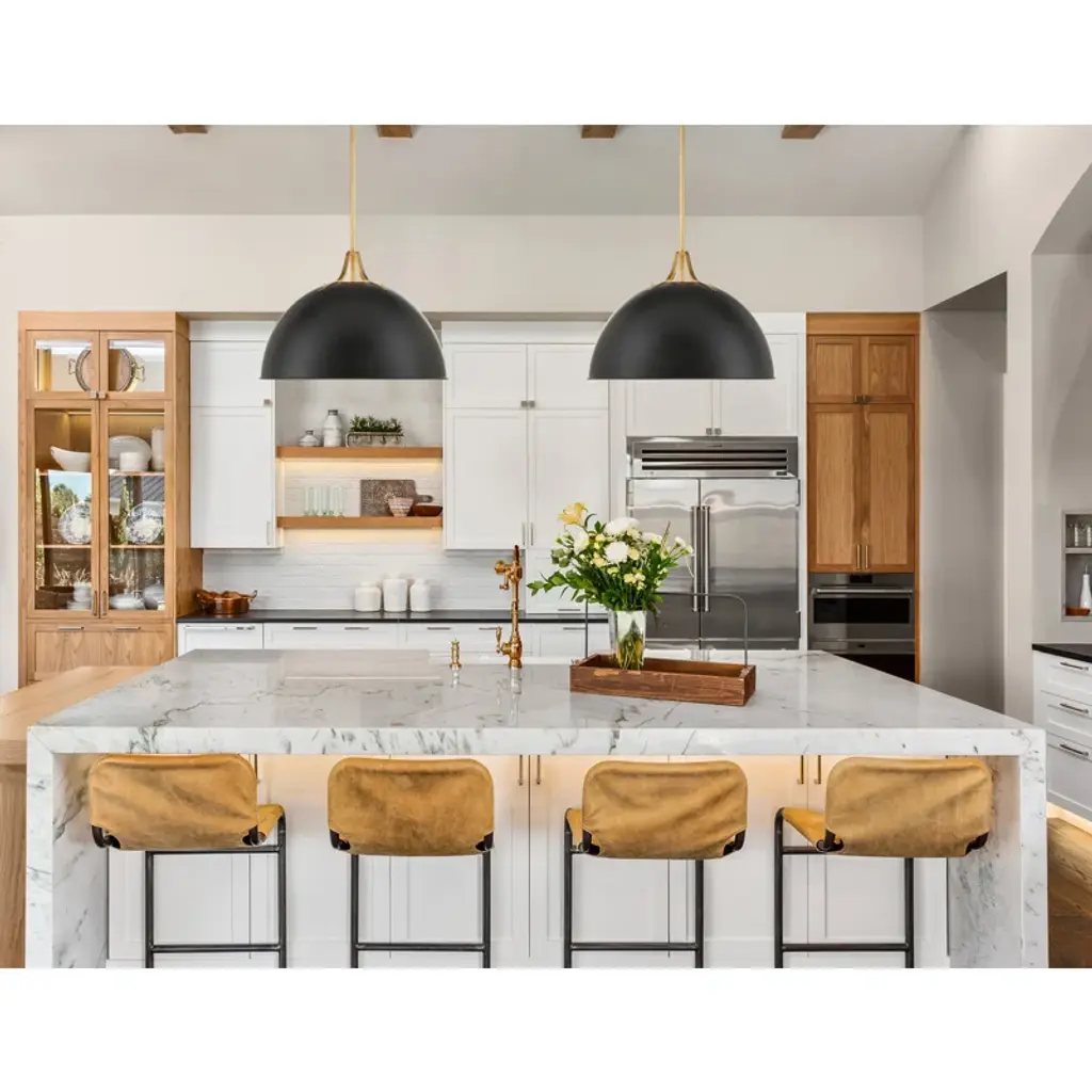 A large dome metal shade presents a clean and streamlined silhouette for our collection. This industrial meets modern farmhouse design shines direct light downwards into your space, making it a perfect choice when hung over a breakfast nook or in pairs over a kitchen island.