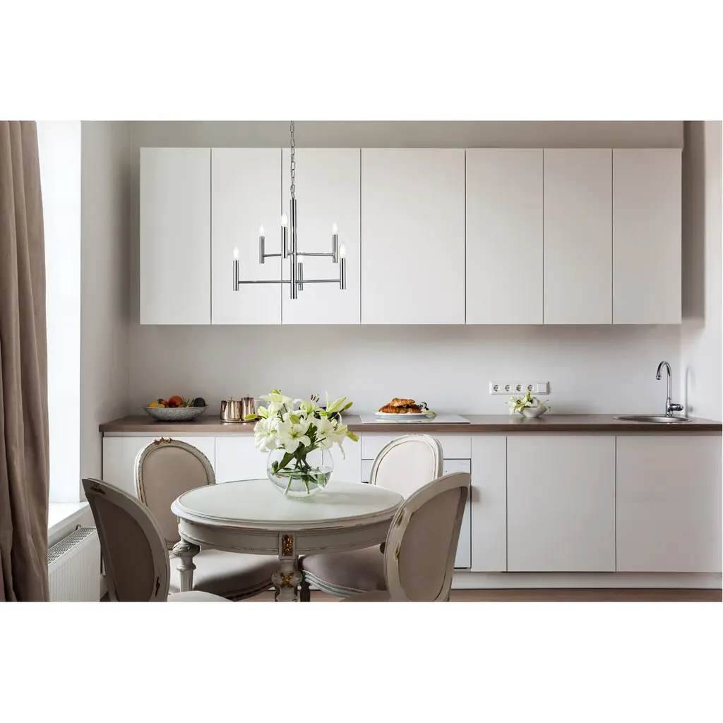 Carmella 6 lights pendant in chrome is the perfect fixture for over a kitchen island, over a dining table, or use in any room to make a big statement. This pendant elevates the look of any space.