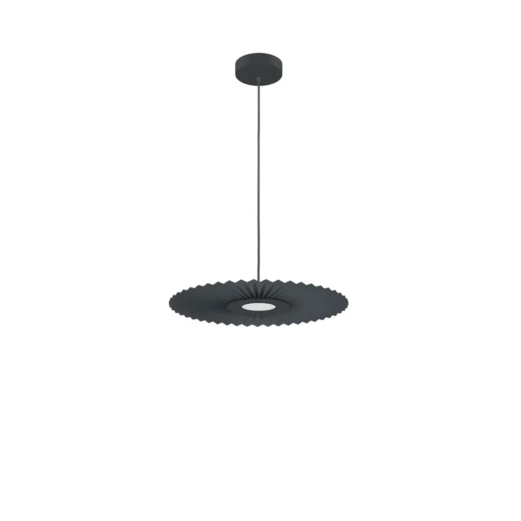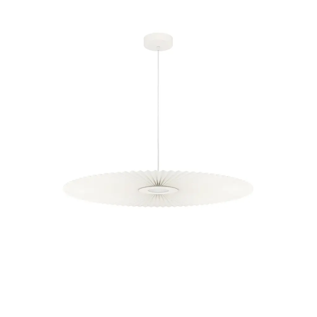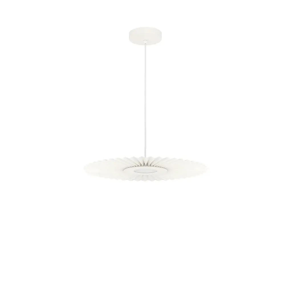 Designers Pauline Capdo and Luis Bellener must have had whirling dancers in mind when they created Carmen. The Brussels-based duo fashion a pleated fabric corolla that surrounds the luminous disc containing an LED light source. They chose the material for both its interesting aesthetic and its structural ability to create a large, self-supporting fabric disc. Light and airy, the pendant light has a ethereal presence and a captivatingly graphic impact.