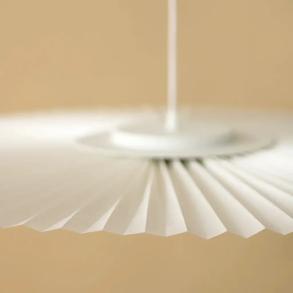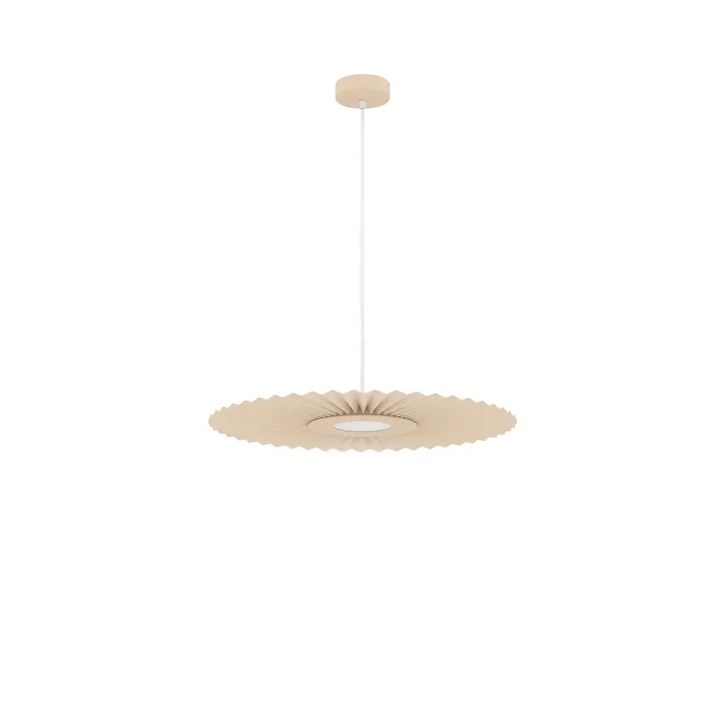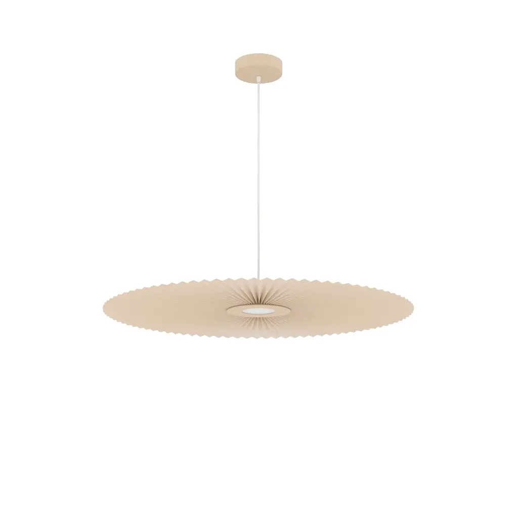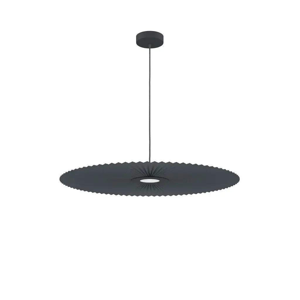 Designers Pauline Capdo and Luis Bellener must have had whirling dancers in mind when they created Carmen. The Brussels-based duo fashion a pleated fabric corolla that surrounds the luminous disc containing an LED light source. They chose the material for both its interesting aesthetic and its structural ability to create a large, self-supporting fabric disc. Light and airy, the pendant light has a ethereal presence and a captivatingly graphic impact.
