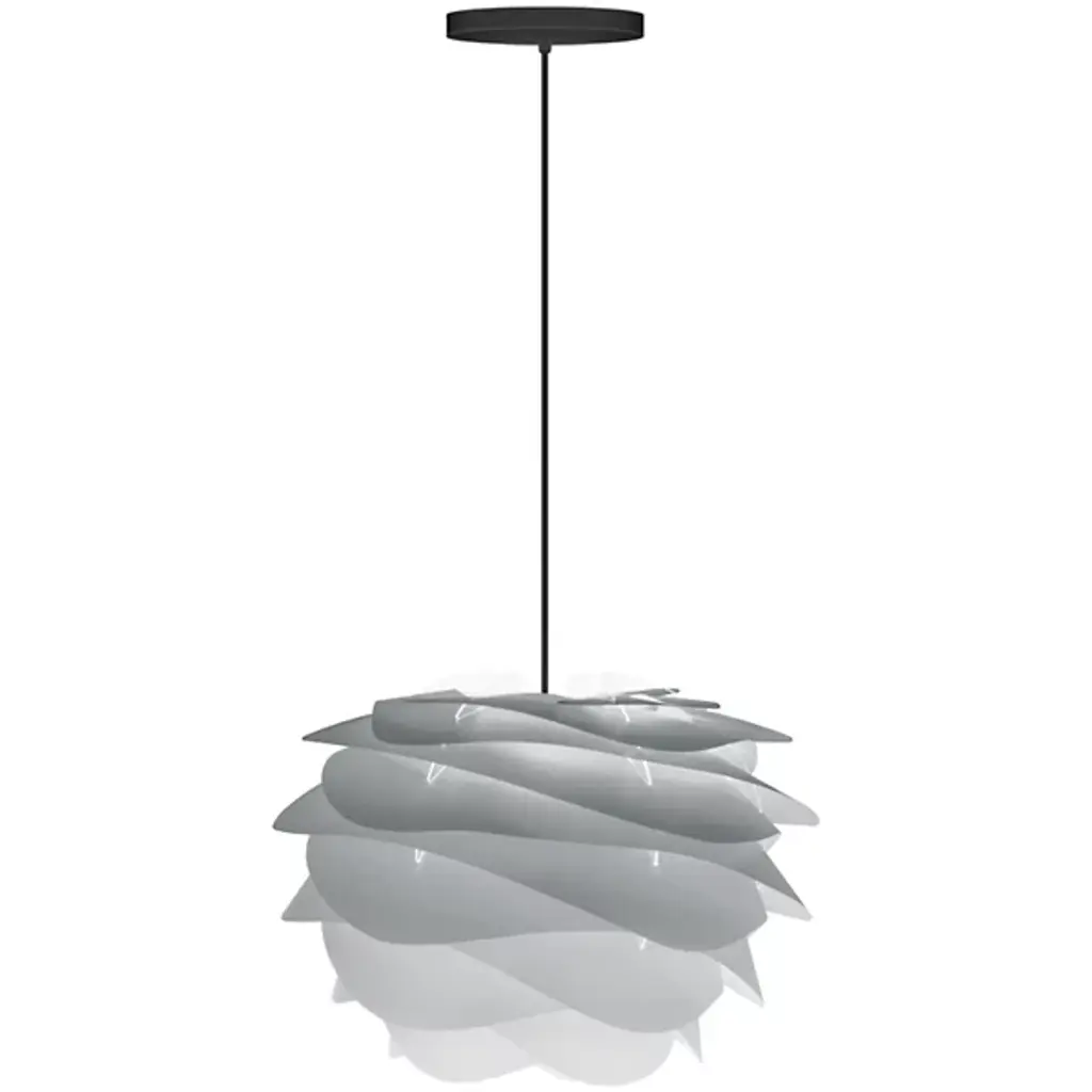 Created with wavy layers of polycarbonate, the UMAGE Carmina Mini Pendant is a swirling source of ambient, glare-free light. The layers are attached to the clear structure at an angled position, diverting the ambient light downward and keeping the bulb out of view. The result is an even spread of internally reflected light that will create a subtle and comforting ambiance for dining or living spaces.