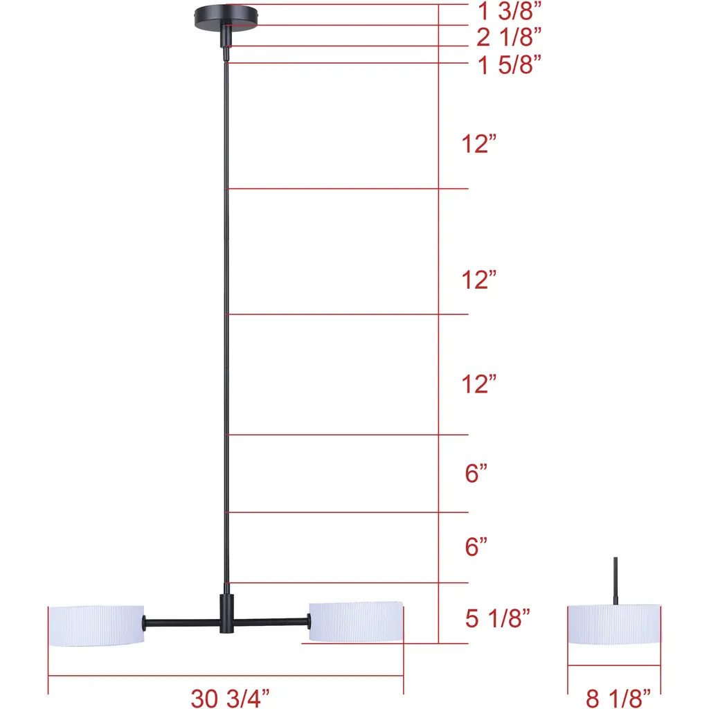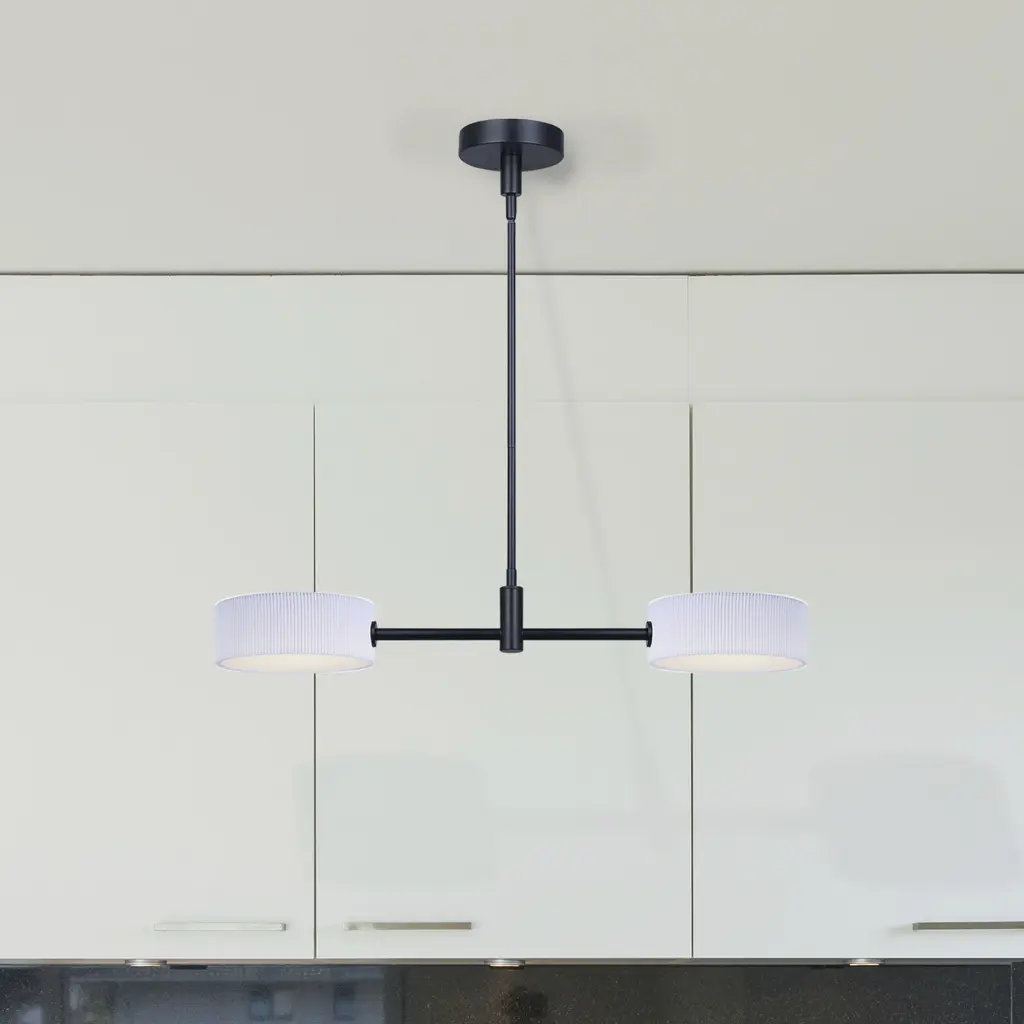 Bring a sleek and contemporary appeal into your home with the CARMYNN LED Rod Pendant. Featuring a matte black finish and two white ribbed shades, this Pendant offers a stylish combination of unique texture and minimalist design. With integrated LED technology, it provides an energy efficient 2250 Lumens of illumination through a frosted acrylic lens. Equipped with three different color temperatures: 3000K, 4000K, and 5000K as well as dimmable functionality to suit any mood. Rated for damp locations, the CARMYNN has an adjustable height ranging from from 10 to 58 inches, this ensures versatile placement in your home from bathrooms, living rooms, entryways and bedrooms alike. Modern, minimalist, unique and stylish the CARMYNN has it all.