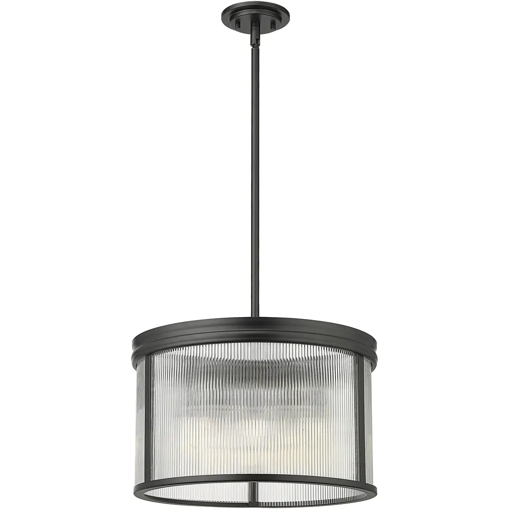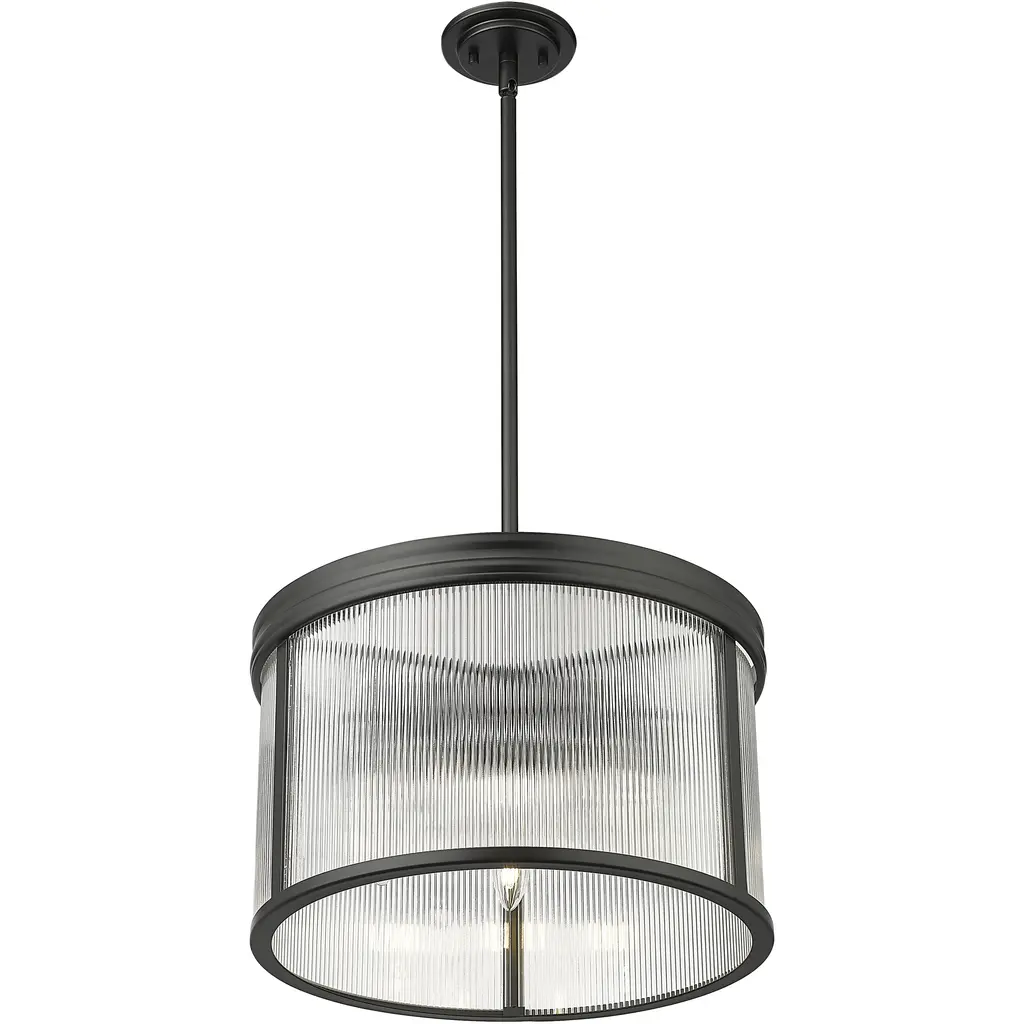 Architectural design motifs translate beautifully in a modern five-light pendant that showcases gorgeous ribbed glass to create a hint of opacity and refraction of light from within. Its round profile is timeless and elegant over any living space, while a matte black finish is crisp and structured to offer distinctive definition.