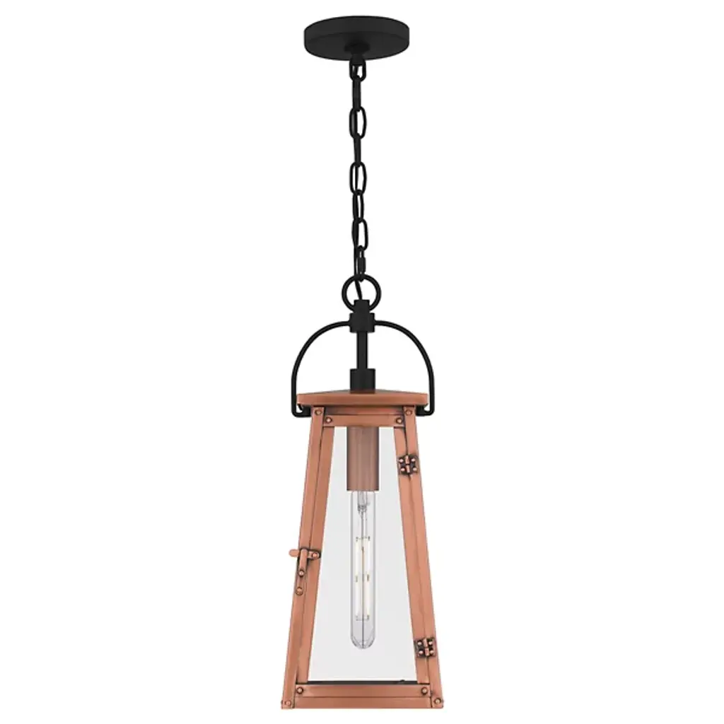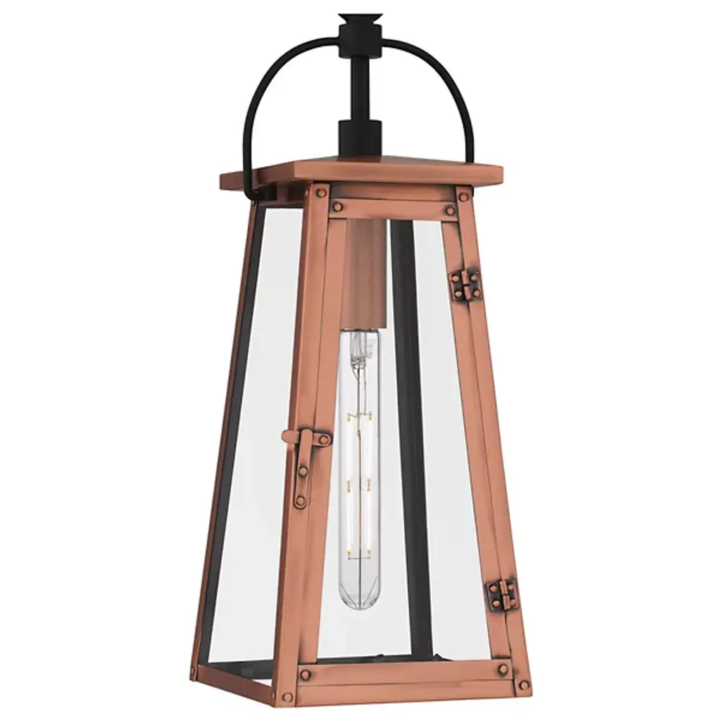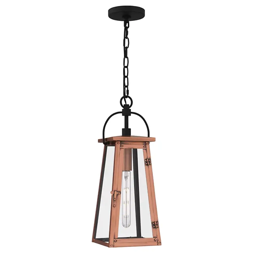 The Carolina Mini Pendant from Quoizel is a timeless piece inspired by the enchanting allure of historical gas lanterns. This exquisite fixture adds a touch of old-world elegance to your interior space. The silhouette is adorned with hand-riveted accents and clear glass panels, meticulously crafted to maximize light output and create a captivating LED glow. At the crown, an elegant arch keeps the mini pendant balanced. It is suspended from a linked chain secured by a ceiling canopy.