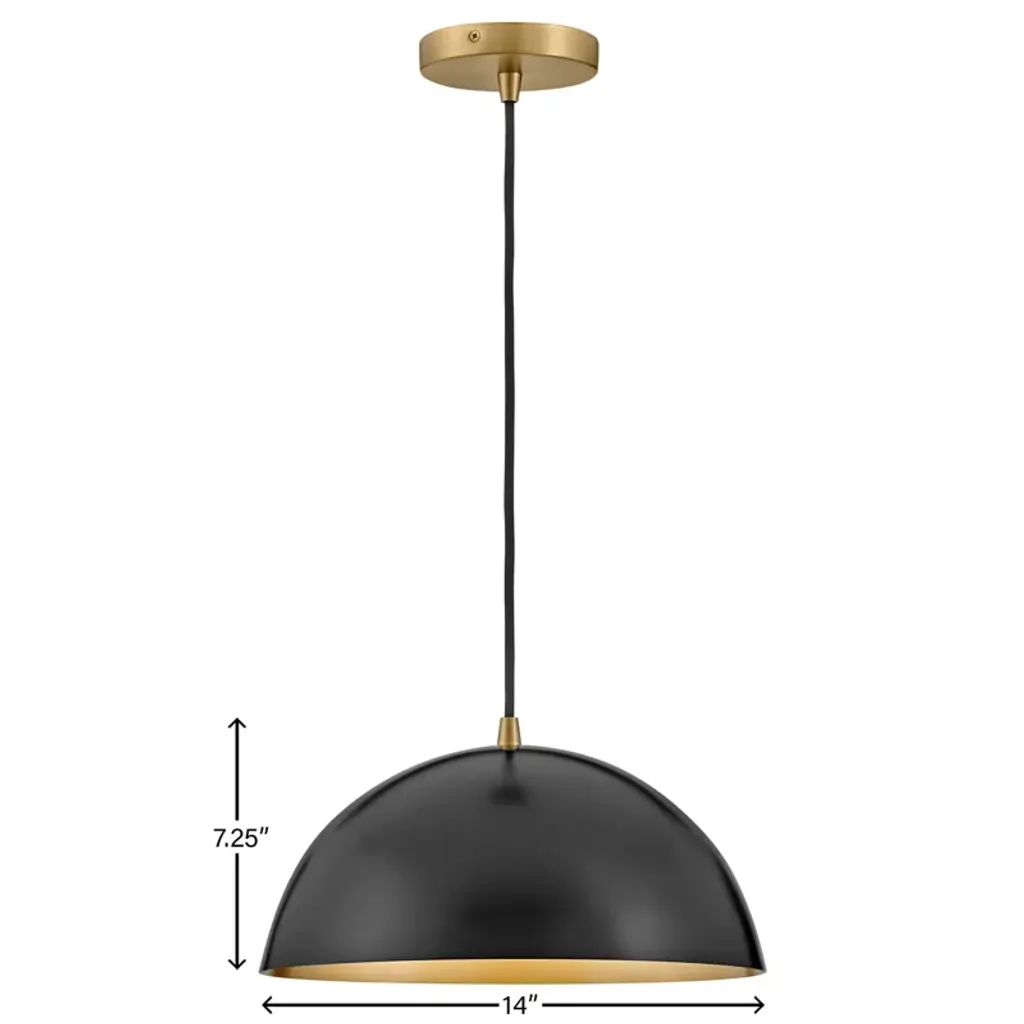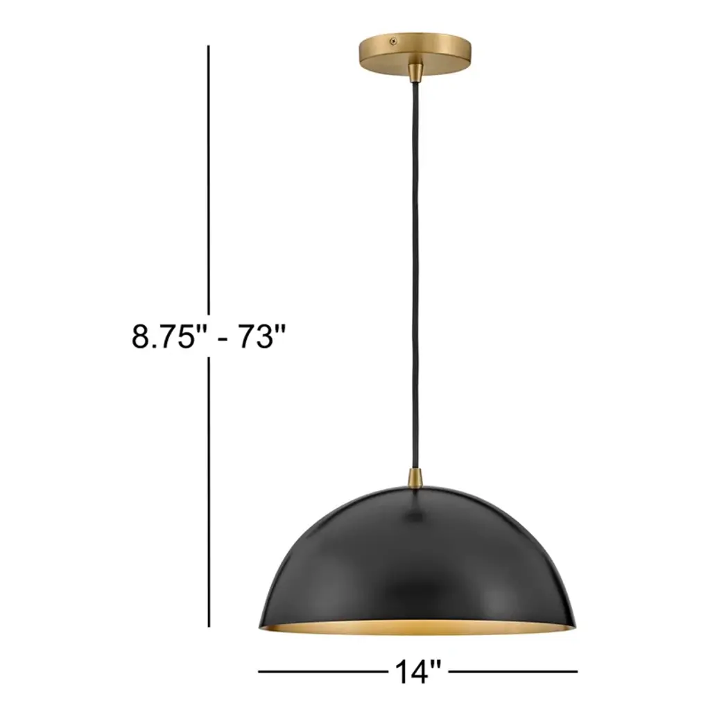 This modern single light pendant features a dome-shaped metal shade in a matte white or black finish with a warm lacquered brass interior, designed to deliver both style and soft glow. The fixture is suspended from a black cord for adjustable height, making it ideal for a kitchen island, small dining area, or entryway. With clean lines and an industrial-modern silhouette, it adds both warmth and refinement to any space.