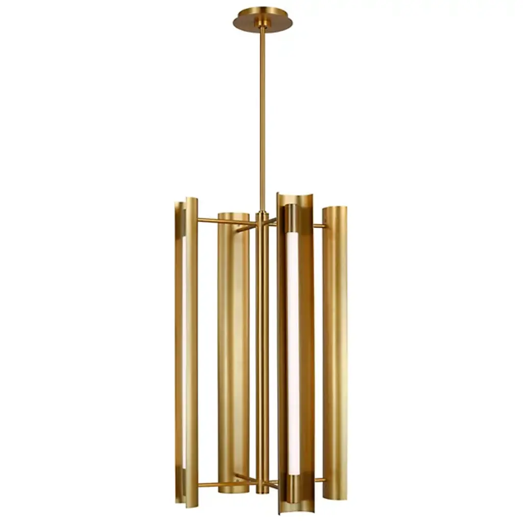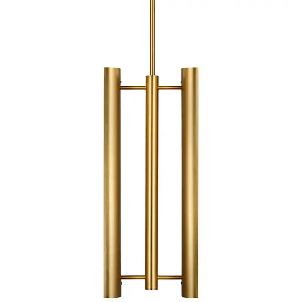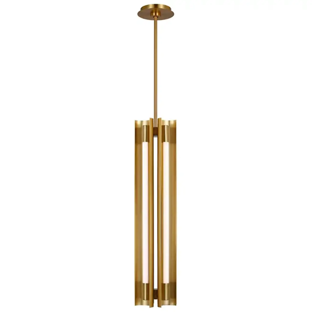 Bring Transitional style to your living space with the Carson Pendant from Visual Comfort Studio, formerly known as Kelly by Kelly Wearstler, From a ceiling canopy, a sleek tubular triad suspends effortlessly in the air. The metalwork is formed with a slender aesthetic in mind. The craftsmanship of this uniform fixture is seen by the interconnection of rods that join the cylinders together. Light emanates from a lovely acrylic shade. When paired with a dimmer, take full control of your setting by adjusting the brightness level of the emitted light.