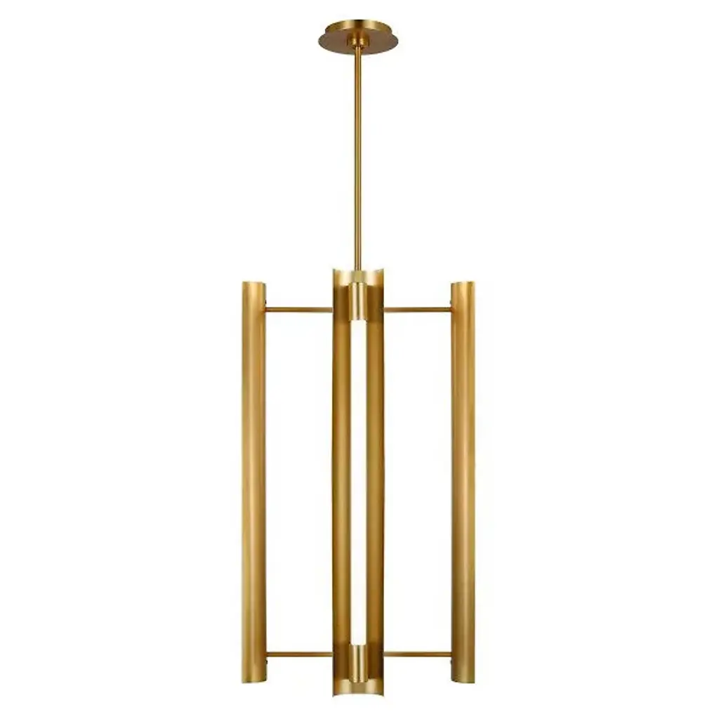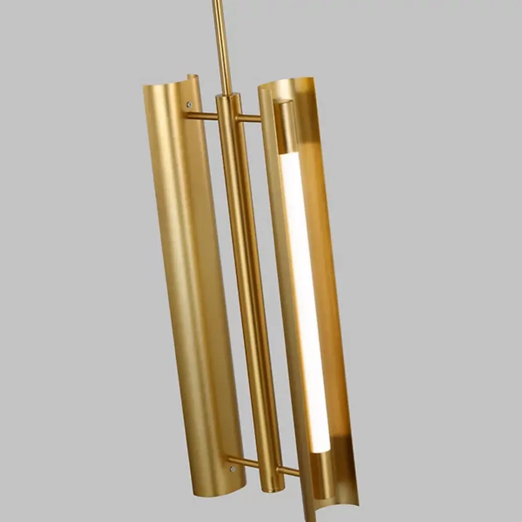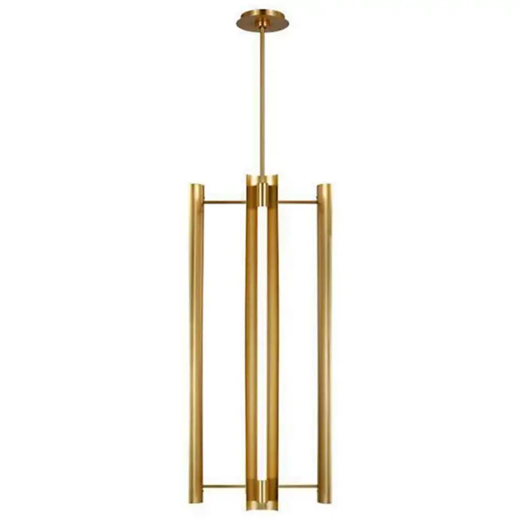 Bring Transitional style to your living space with the Carson Pendant from Visual Comfort Studio, formerly known as Kelly by Kelly Wearstler, From a ceiling canopy, a sleek tubular triad suspends effortlessly in the air. The metalwork is formed with a slender aesthetic in mind. The craftsmanship of this uniform fixture is seen by the interconnection of rods that join the cylinders together. Light emanates from a lovely acrylic shade. When paired with a dimmer, take full control of your setting by adjusting the brightness level of the emitted light.