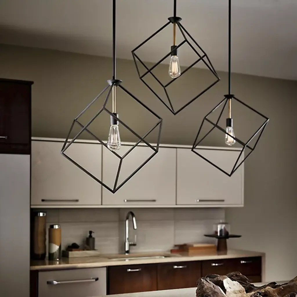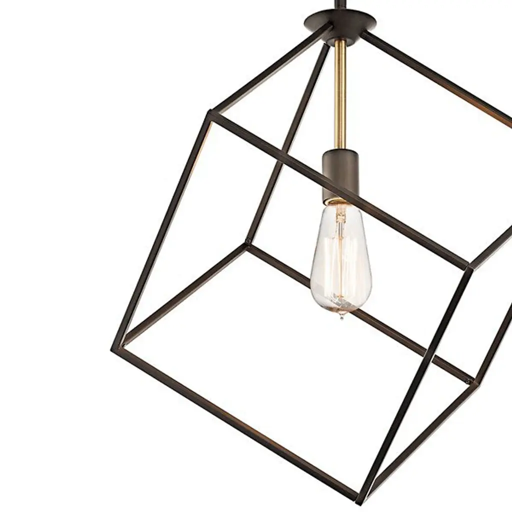 Add a little playfulness to your home décor with the Cartone Pendant from Kichler. Like a modern art display begging to be looked at and appreciated, this piece consists of a simple, yet intriguing geometrically-precise cube formed from a series of thin metal layers. The cube is mounted at an angle such that one of the corners serves as the base from which a single bulb drops down into the center. The light, without any layer to diffuse through, reaches throughout the room in a pure and clean manner.