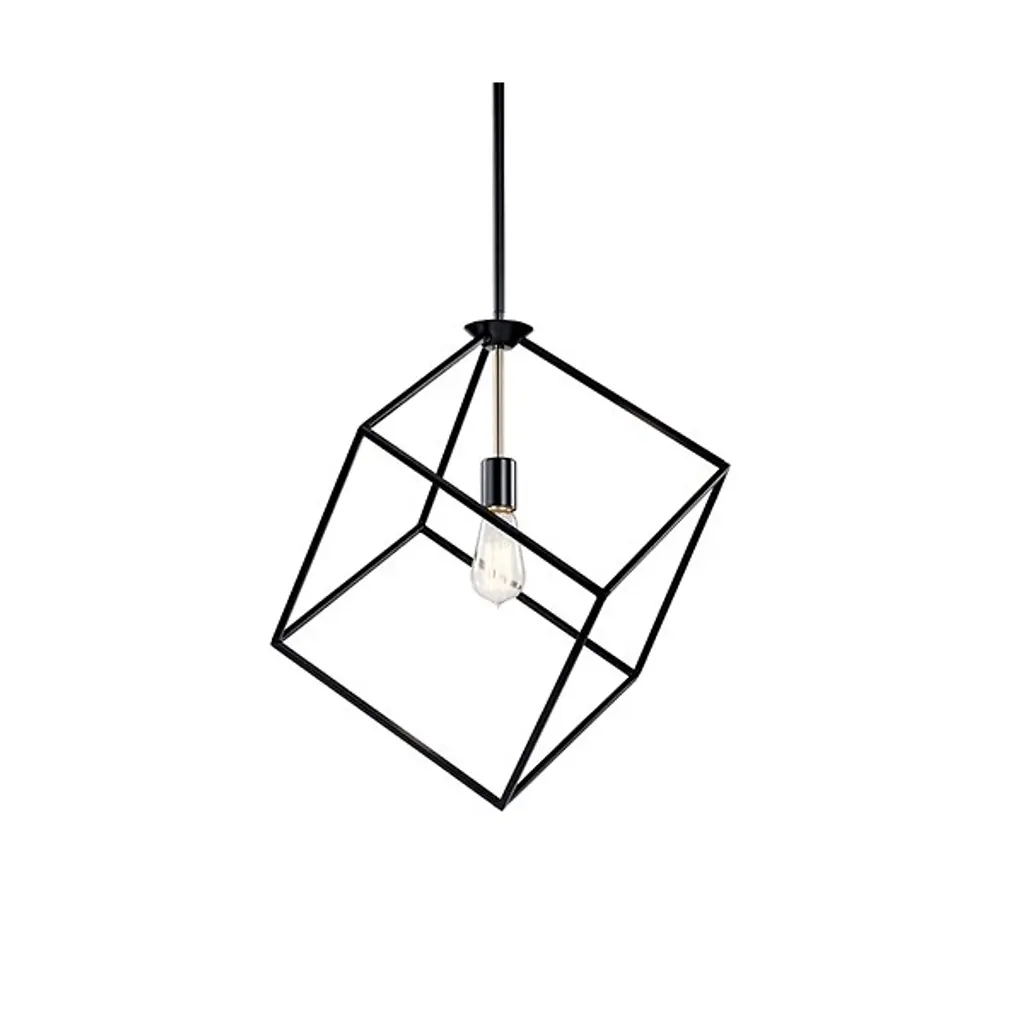 Add a little playfulness to your home décor with the Cartone Pendant from Kichler. Like a modern art display begging to be looked at and appreciated, this piece consists of a simple, yet intriguing geometrically-precise cube formed from a series of thin metal layers. The cube is mounted at an angle such that one of the corners serves as the base from which a single bulb drops down into the center. The light, without any layer to diffuse through, reaches throughout the room in a pure and clean manner.