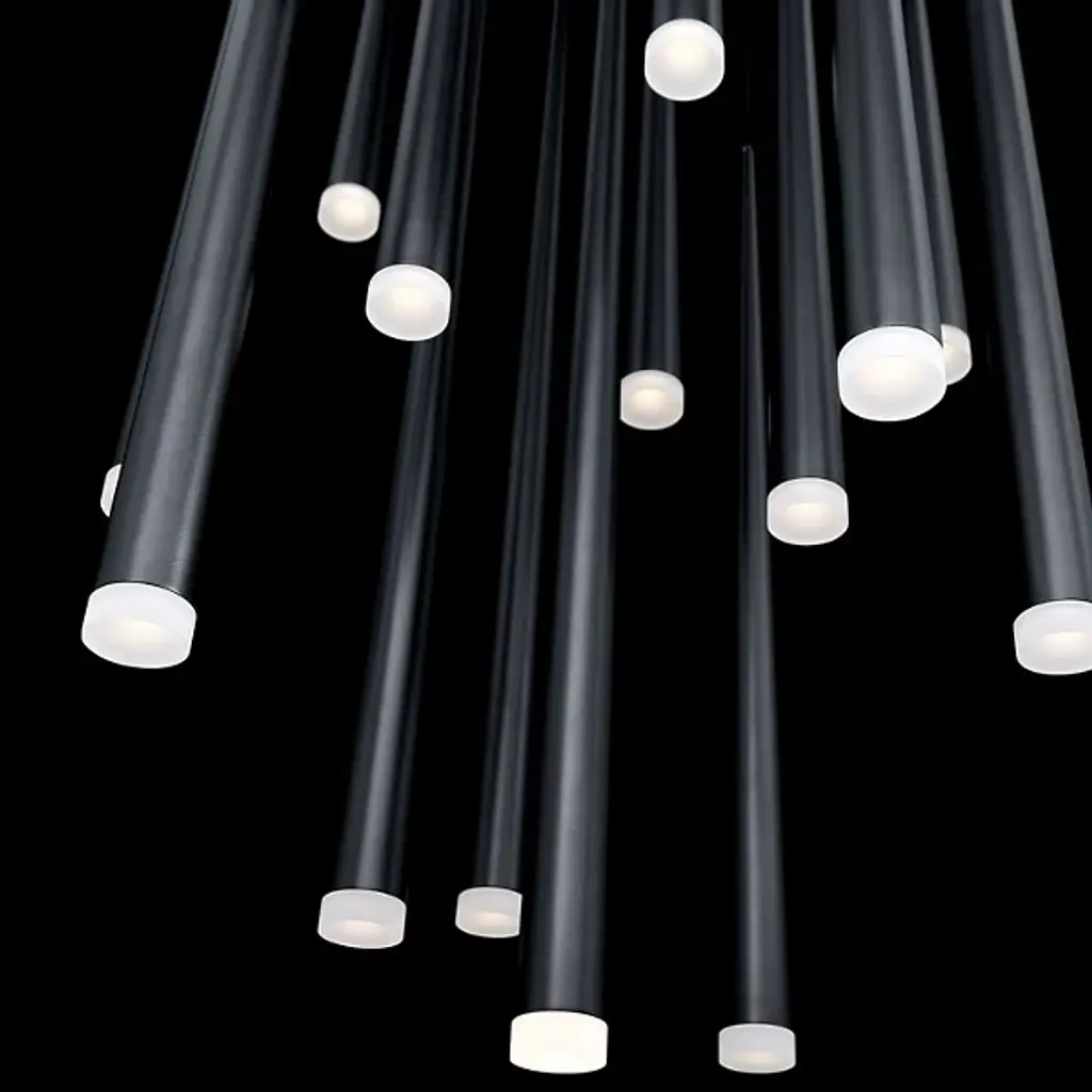 Add a touch of elegance to your modern home with the Cascade Etched Glass Round LED Multi-Light Pendant from Modern forms. Showcasing a clean and eye-catching silhouette, this piece features a collection of slim and smooth metal pendants that hang from thin wires. Tightly clustered, the pendants slightly widen and end with an etched glass cap that reveals the crisp and focused light from the integrated, energy-efficient LEDs within each piece.