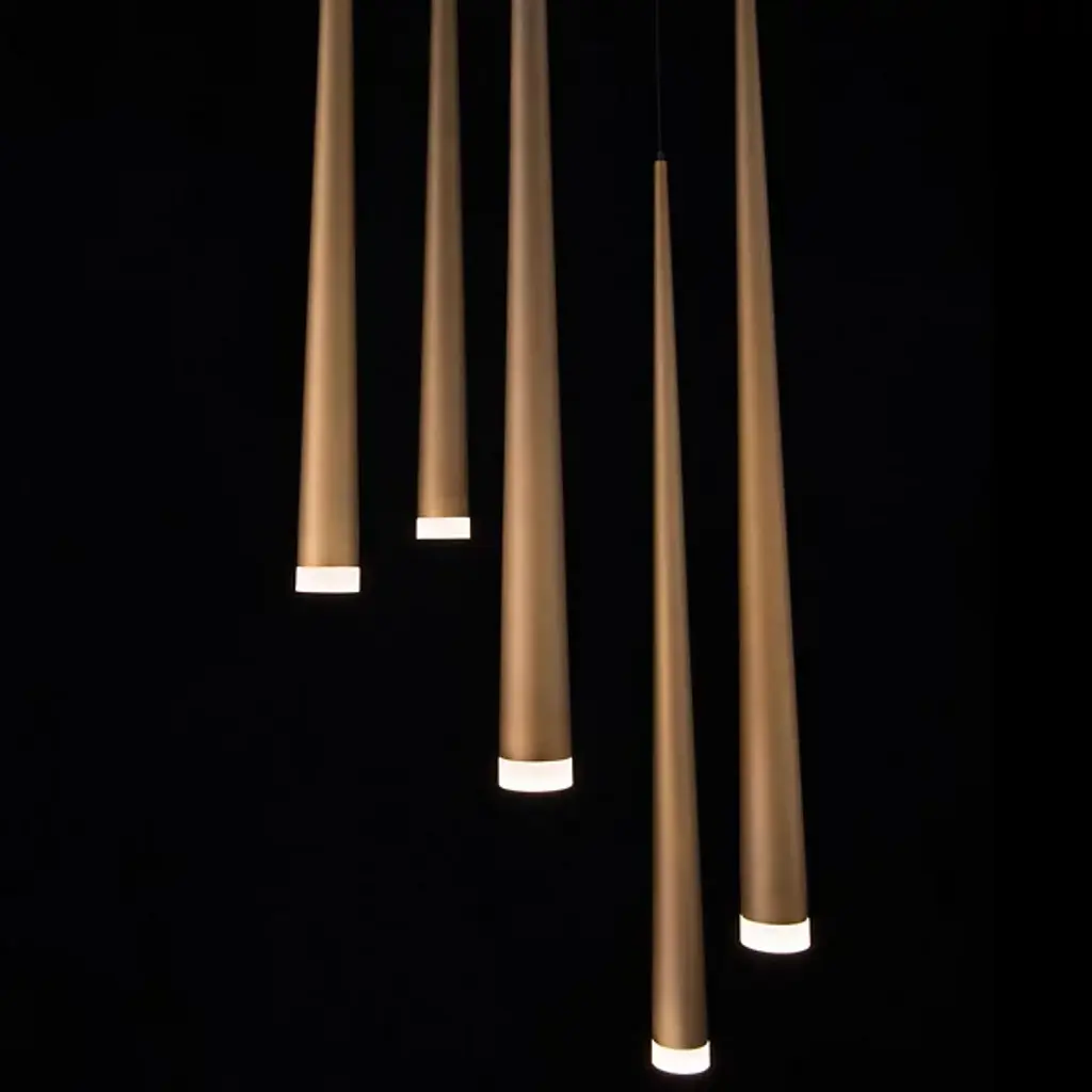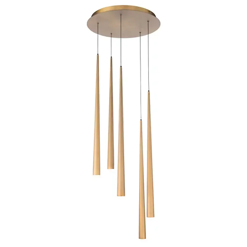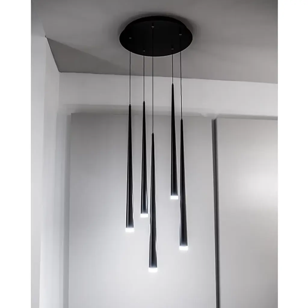 Add a touch of elegance to your modern home with the Cascade Etched Glass Round LED Multi-Light Pendant from Modern forms. Showcasing a clean and eye-catching silhouette, this piece features a collection of slim and smooth metal pendants that hang from thin wires. Tightly clustered, the pendants slightly widen and end with an etched glass cap that reveals the crisp and focused light from the integrated, energy-efficient LEDs within each piece.