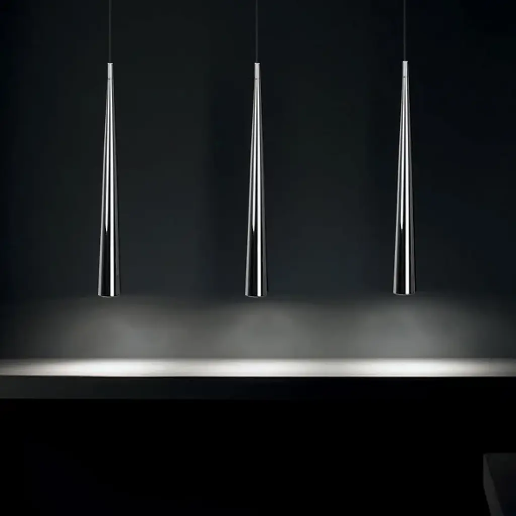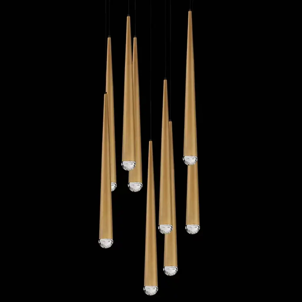 Bring your interiors to life with the contemporary presence of the Cascade Round Multi-Light Pendant from Modern Forms. A simple design that starts by using a round aluminum canopy to anchor a series of slender cables, each one drops to an integrated LED set within a conical housing at differing heights. The lamping itself is robust and energy-efficient, gentled by the small caps of cut crystal that sit below each one, lending the piece more natural notes of falling water.