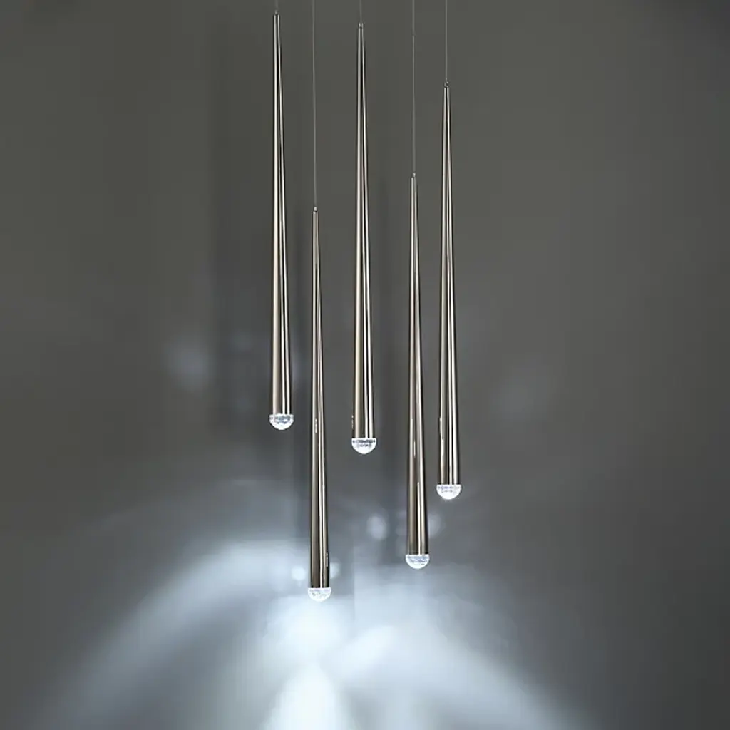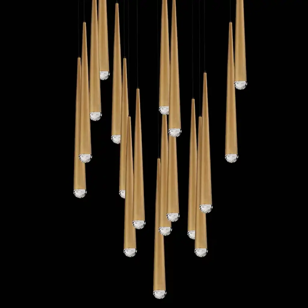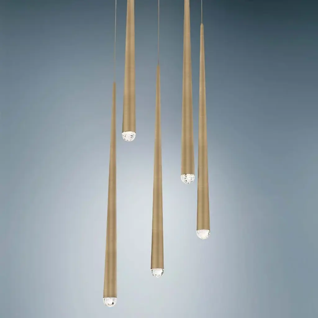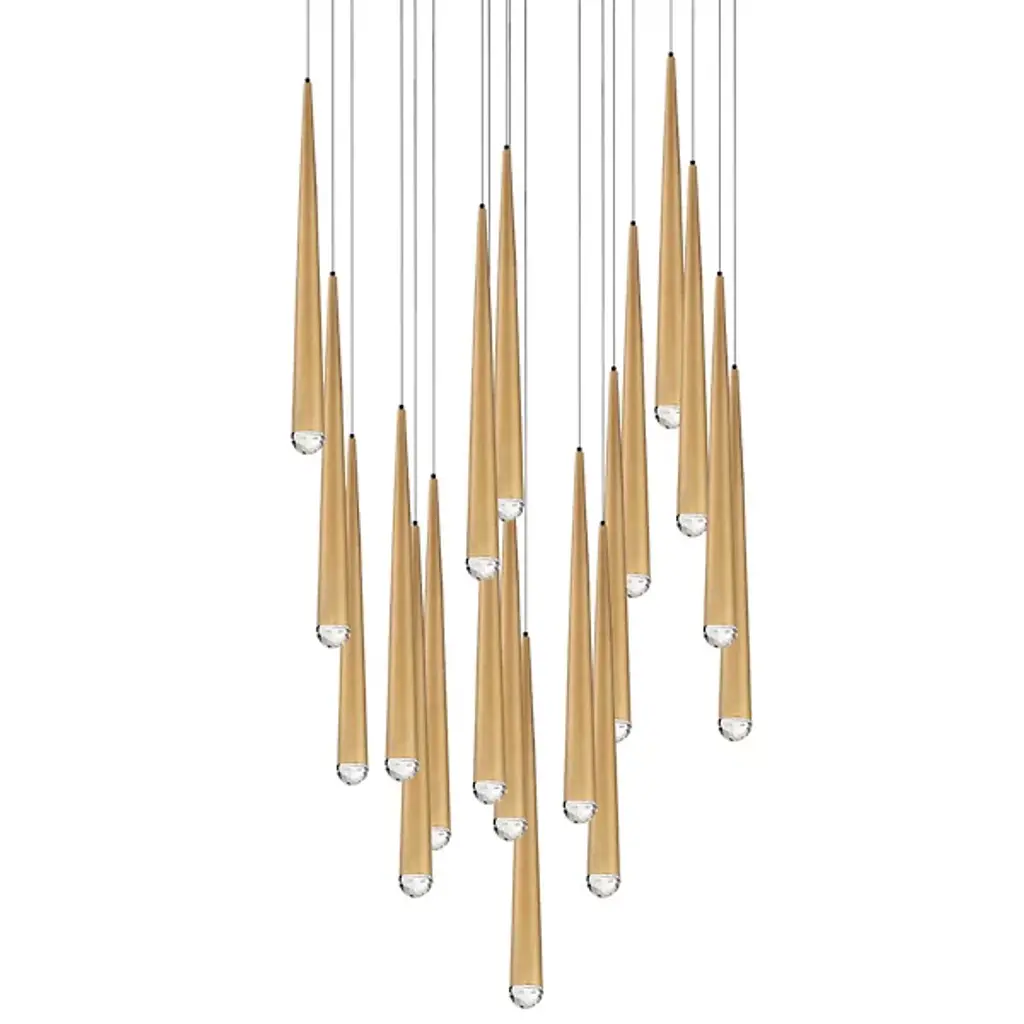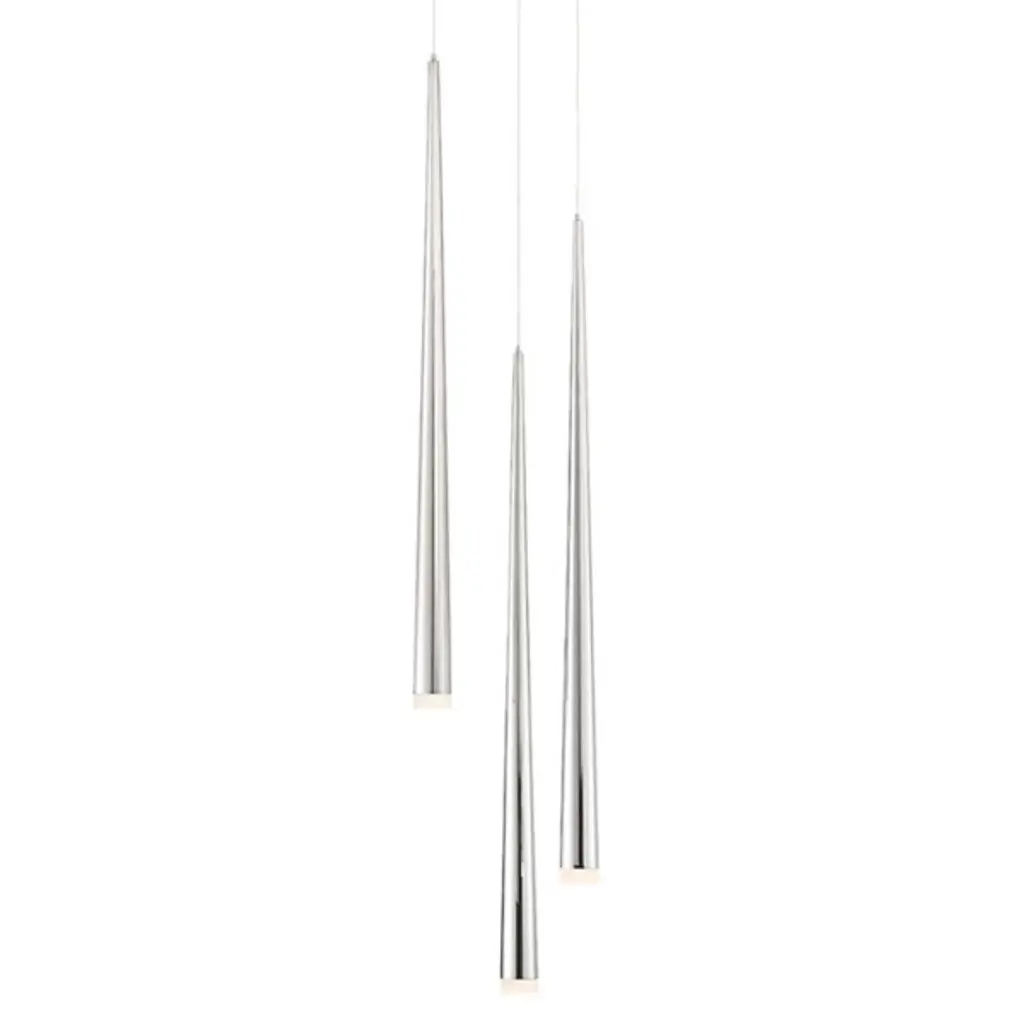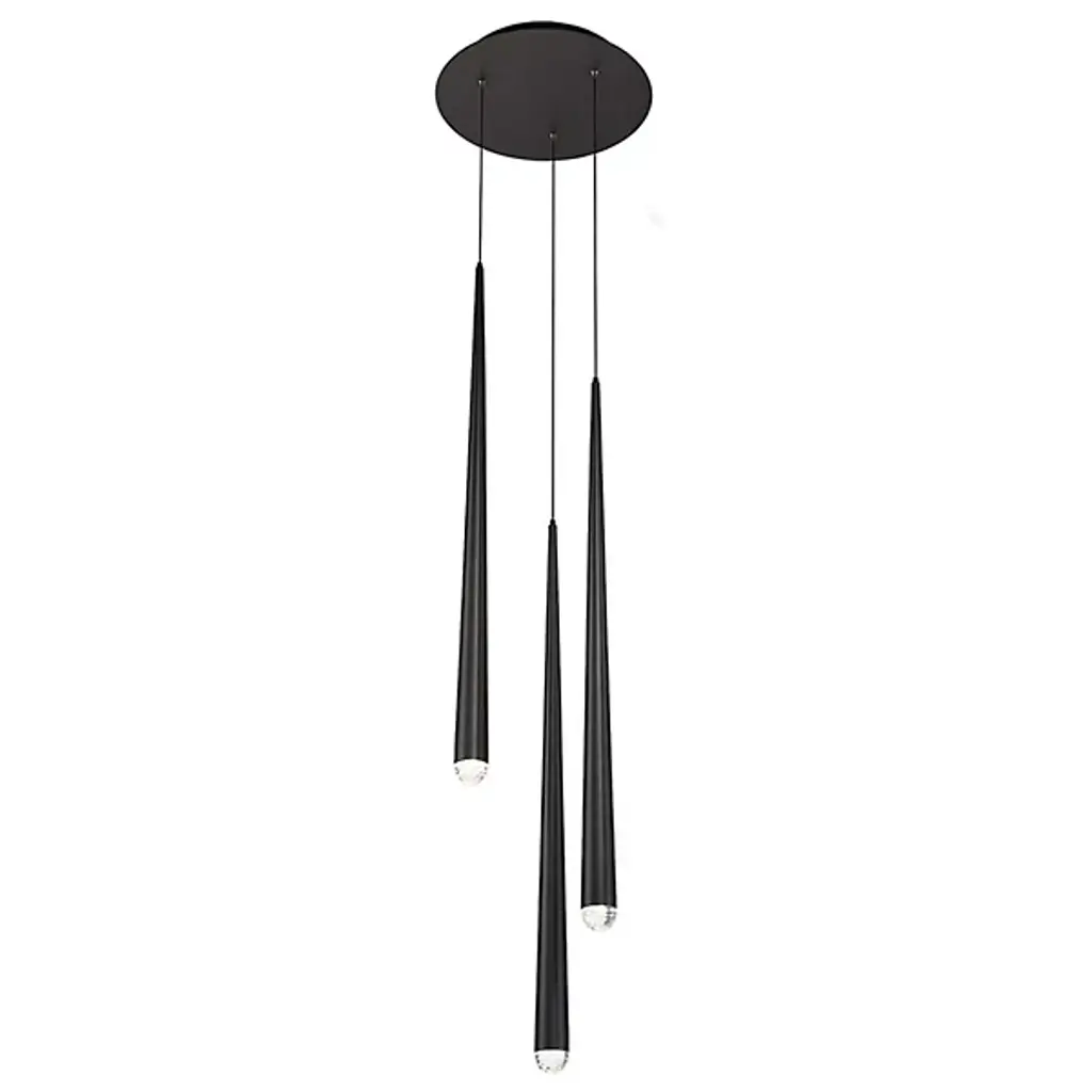 Bring your interiors to life with the contemporary presence of the Cascade Round Multi-Light Pendant from Modern Forms. A simple design that starts by using a round aluminum canopy to anchor a series of slender cables, each one drops to an integrated LED set within a conical housing at differing heights. The lamping itself is robust and energy-efficient, gentled by the small caps of cut crystal that sit below each one, lending the piece more natural notes of falling water.