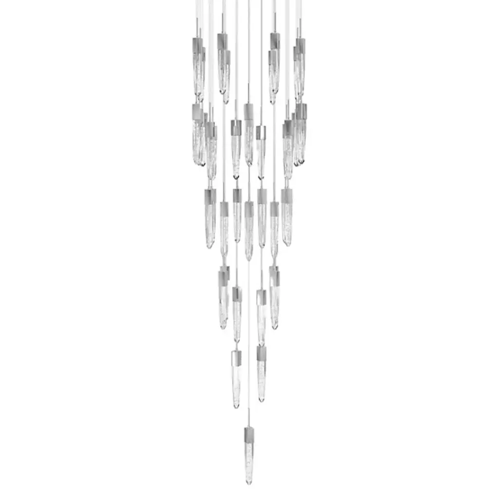 The Cascade Square Multi-Light LED Pendant from Modern Forms is a chic yet understated exclamation of luxury. This pendant can be installed in various arrangements, creating an artful statement while delivering ample lighting for any home or business. Its elegant steel body, paired with a crystal diffuser, offers a sleek and luxurious light source. Ultra-sleek electrified cables eliminate the need for clunky power wires, and the height is easily adjustable through push-pin connectors on the canopy, ensuring both style and functionality in any setting.