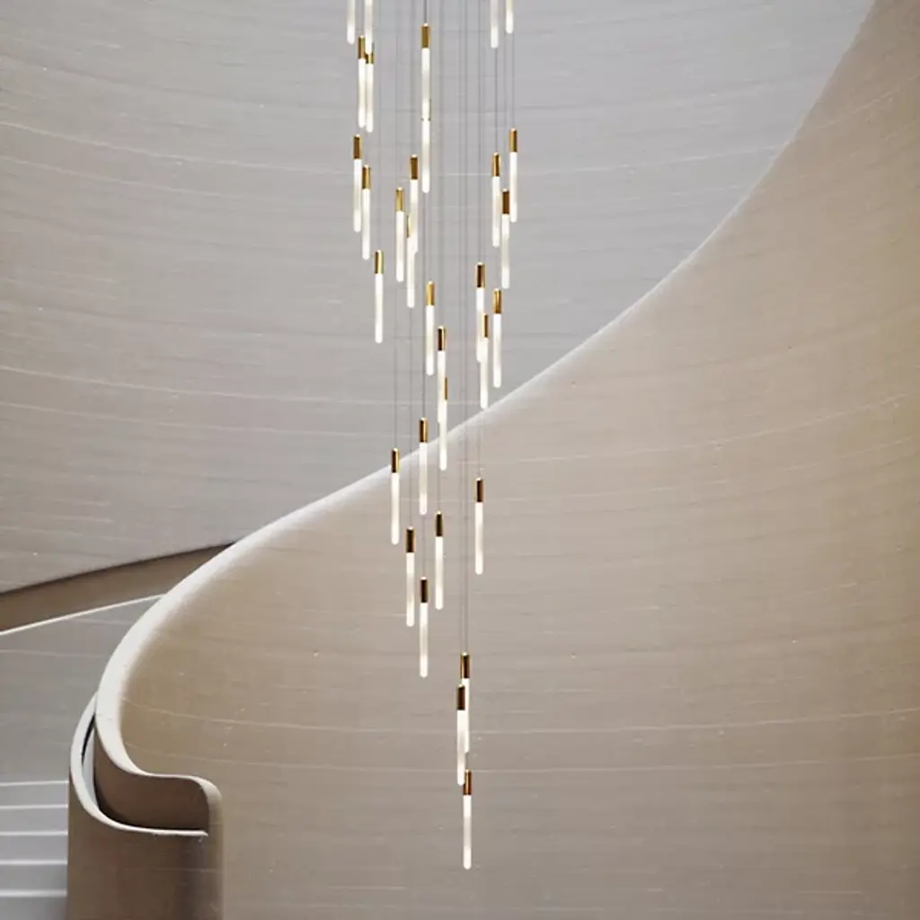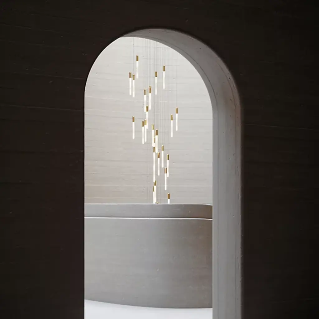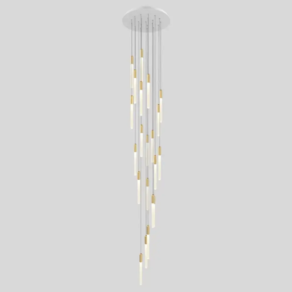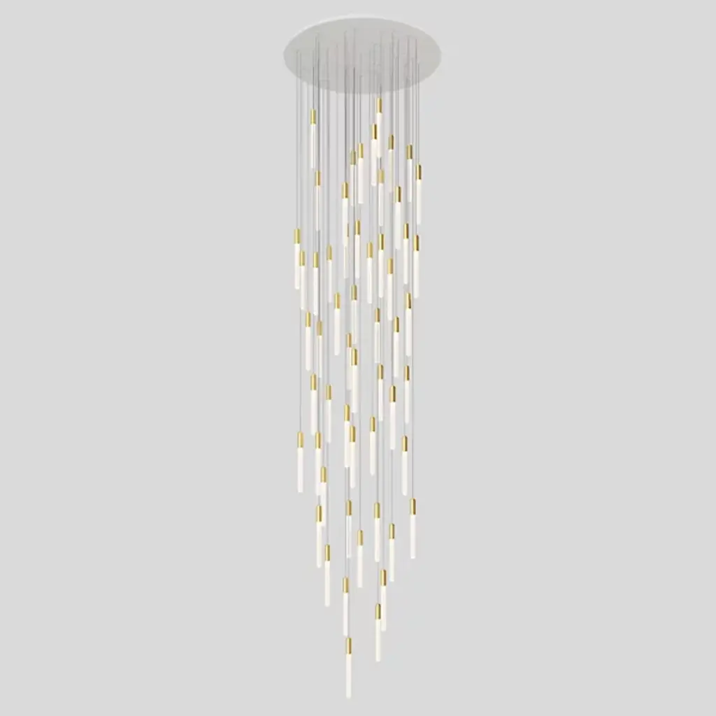 The Cascadia Multi Light Pendant from Matthew McCormick Studio celebrates mother nature with a fluid composition of light, evocative of the energetic waterways of the Canadian cascade mountain range. This pure design underscores creator Matthew McCormick's love for giving life to forms using light. McCormick sets a dynamic foundation with a multi-point canopy. Fine cord leads into brass fittings that charm with a bold, crisp finish. Handcrafted glass cylinders extend the piece's flowy silhouette and help deliver a light that's both brilliant and easy on the eyes.