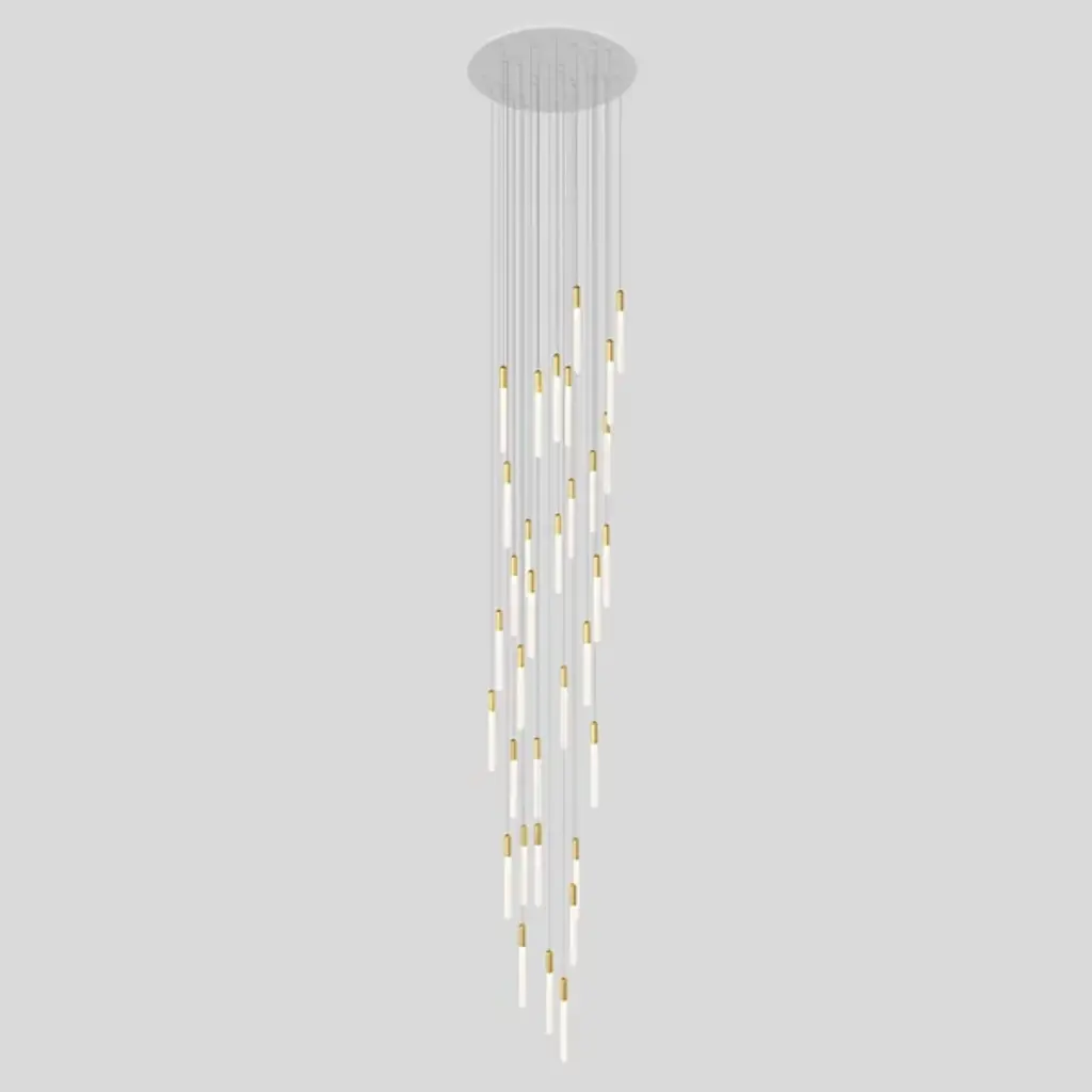 The Cascadia Multi Light Pendant from Matthew McCormick Studio celebrates mother nature with a fluid composition of light, evocative of the energetic waterways of the Canadian cascade mountain range. This pure design underscores creator Matthew McCormick's love for giving life to forms using light. McCormick sets a dynamic foundation with a multi-point canopy. Fine cord leads into brass fittings that charm with a bold, crisp finish. Handcrafted glass cylinders extend the piece's flowy silhouette and help deliver a light that's both brilliant and easy on the eyes.