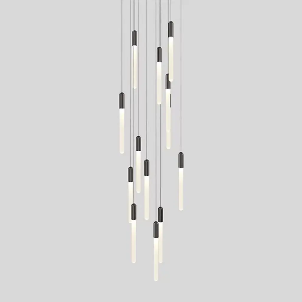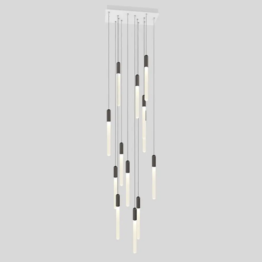 Drawing its name and organic composition from the snowy Canadian mountain range, the Cascadia Rectangular Multi Light Pendant from Matthew McCormick awes like a surge of water shimmering with highlights. The piece illustrates creator Matthew McCormick's love of transforming shapes through light. McCormick designs the piece as an homage to nature. The designer uses a minimal canopy and ultra-fine wires to create a weightless look. Rounded brass fittings define the piece's silhouette with a subtle shine. Handcrafted glass cylinders guide the light downward in an even flow. The dynamic placement of these cylinders energizes the room as a hanging sculpture while off or on.