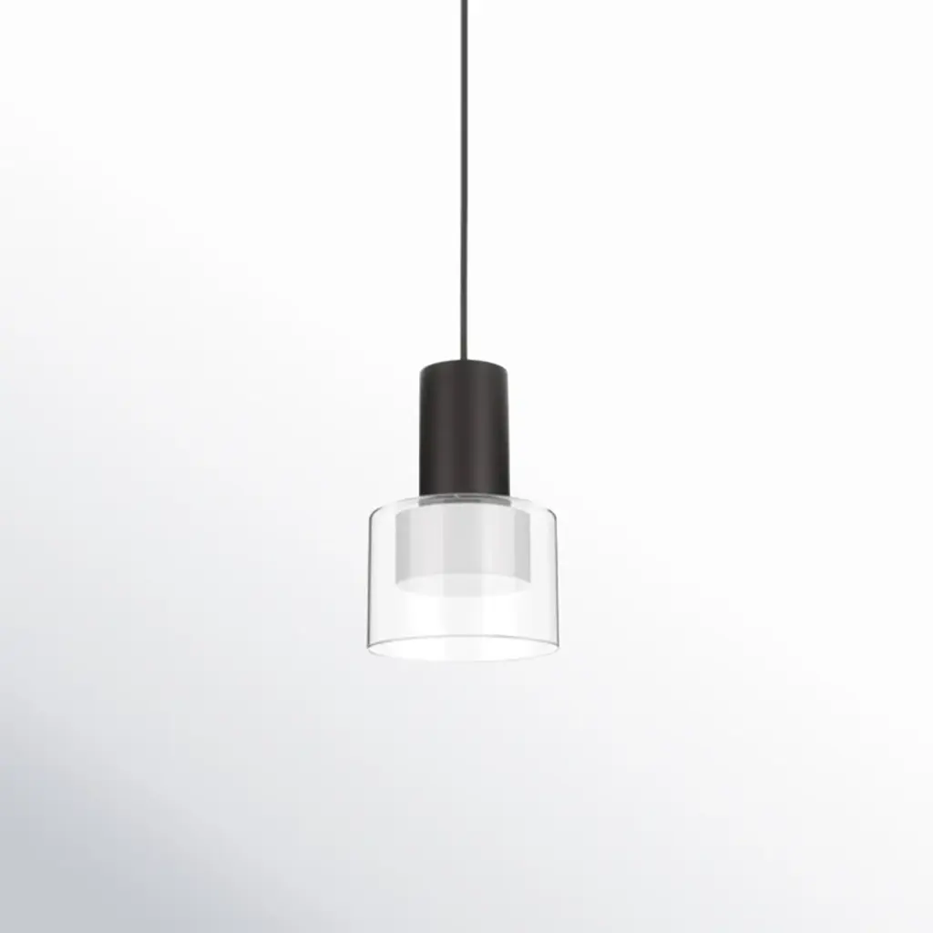 The Casey mini pendant by Eglo features a black finish with an elegant double-shade design with a clear outer glass shade surrounding a white plastic interior shade. The black fully adjustable cable gives you the option for various hanging heights.