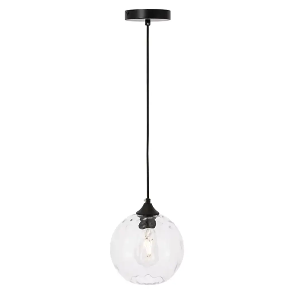 The Cashel Pendant from Elegant Lighting captures the essence of a frozen soap bubble. It showcases a clear glass sphere with a subtly textured surface that refracts light in entrancing ways. Suspended from a slender cord, the globe houses a single bulb that casts a mellow glow through its crystalline form. Perfect for adding a touch of levity to modern interiors, the Cashel Pendant works beautifully as a standalone piece or grouped in a cluster for a more dramatic effect.