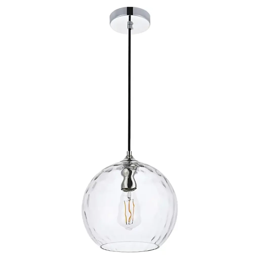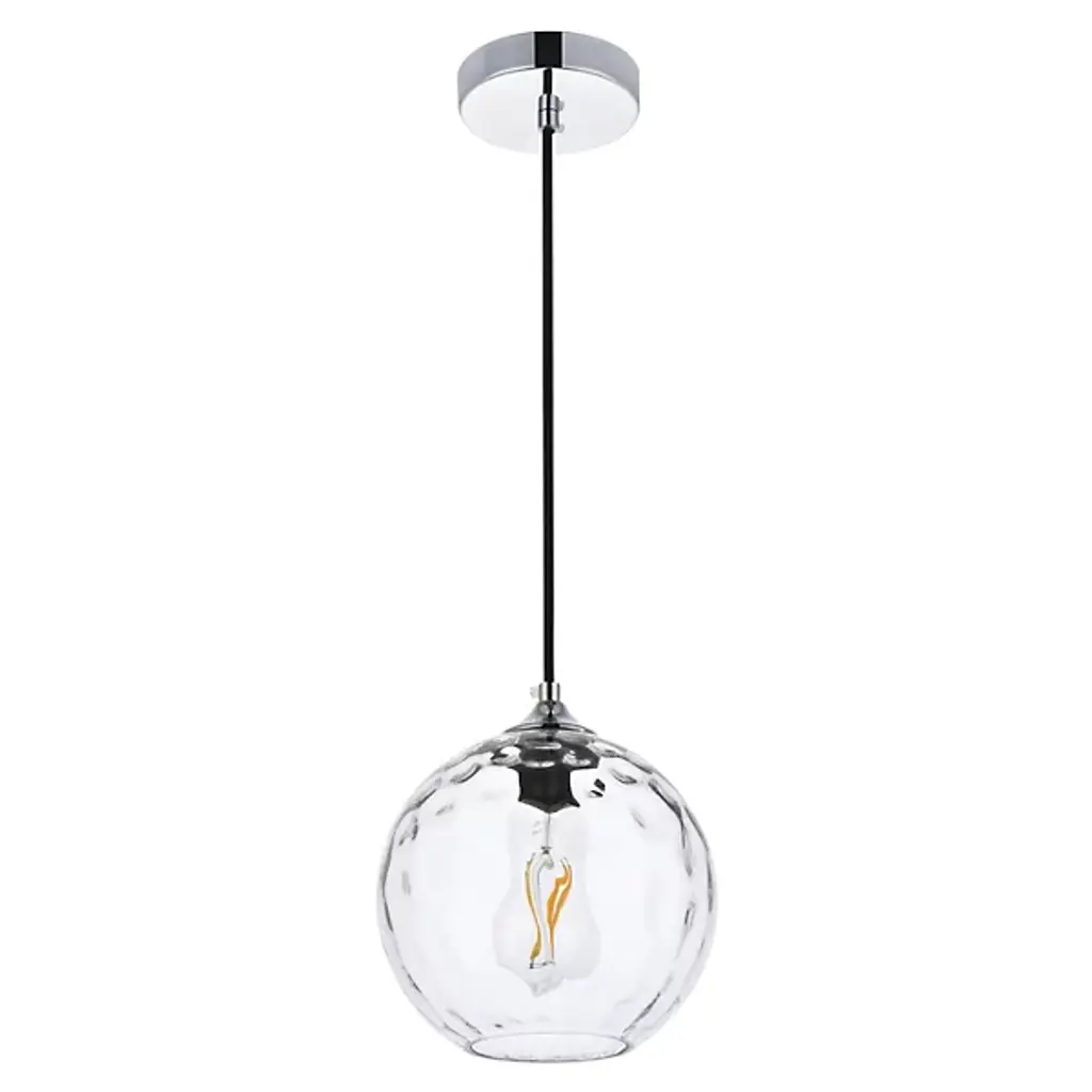 The Cashel Pendant from Elegant Lighting captures the essence of a frozen soap bubble. It showcases a clear glass sphere with a subtly textured surface that refracts light in entrancing ways. Suspended from a slender cord, the globe houses a single bulb that casts a mellow glow through its crystalline form. Perfect for adding a touch of levity to modern interiors, the Cashel Pendant works beautifully as a standalone piece or grouped in a cluster for a more dramatic effect.