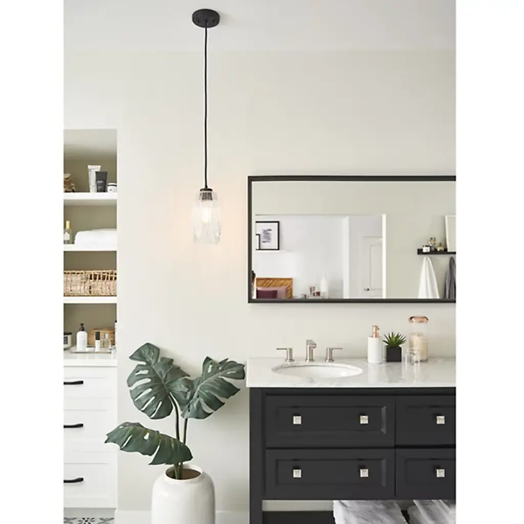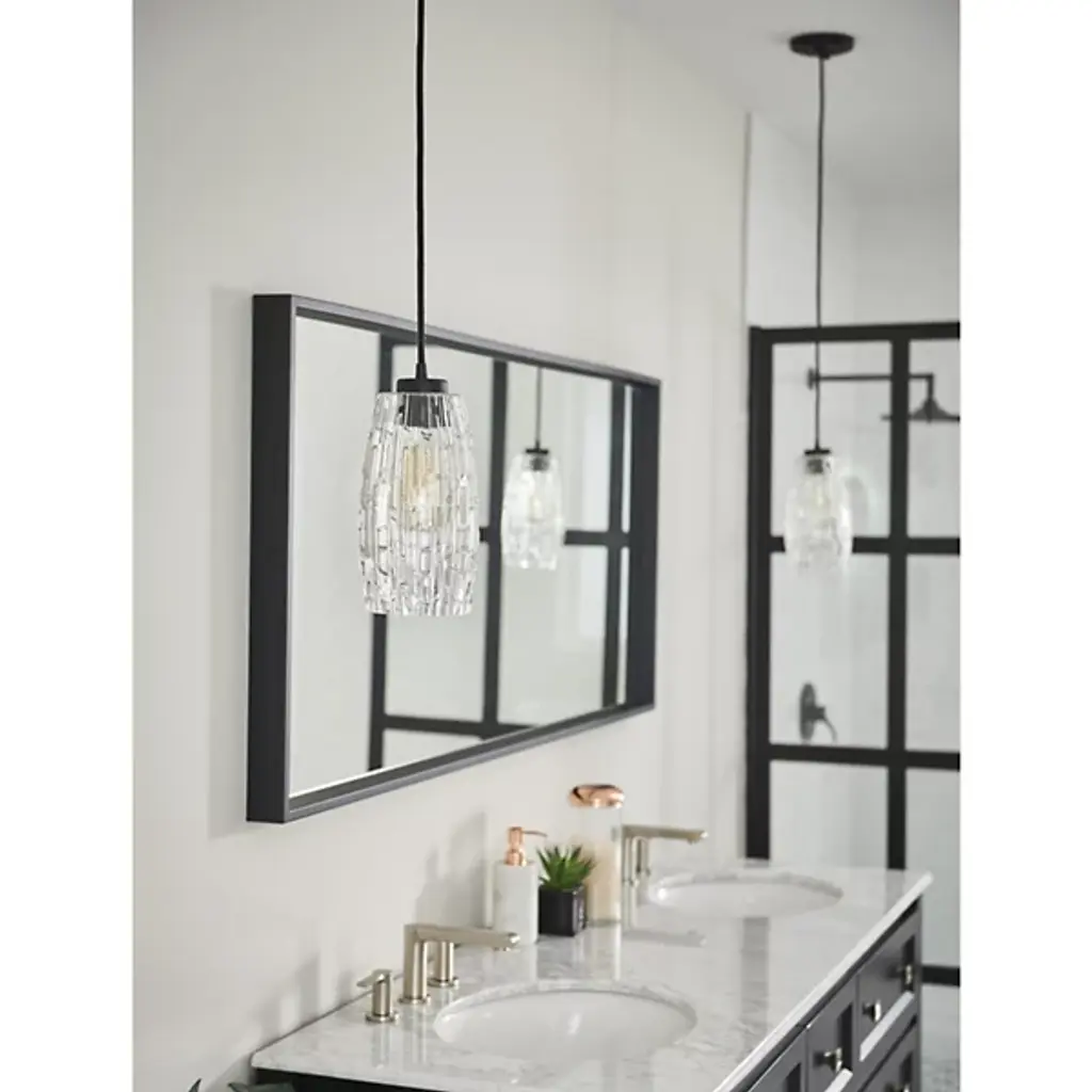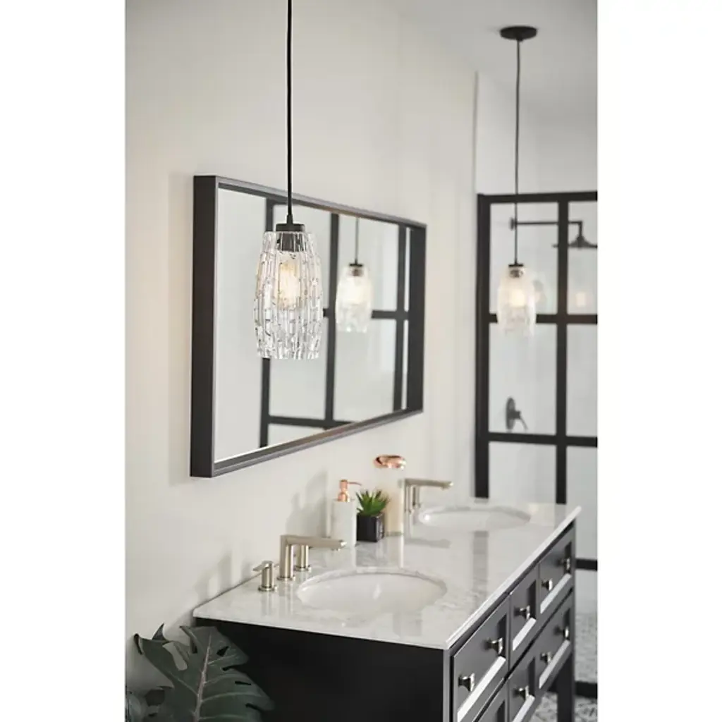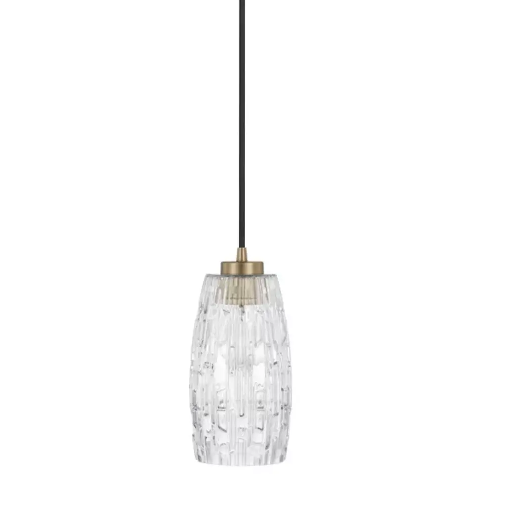 The Casper Mini Pendant by Capital Lighting is a small yet stunning addition to spaces that features a beautiful, embossed glass shade. Suspended by a single cord from a round canopy, a sleek metal socket with a handsome finish holds a single light source within the softly rounded silhouette of the shade. The textured, dynamic look of the glass lends a playful surface for light to filter through, bringing this design to life and creating a bright, welcoming environment.