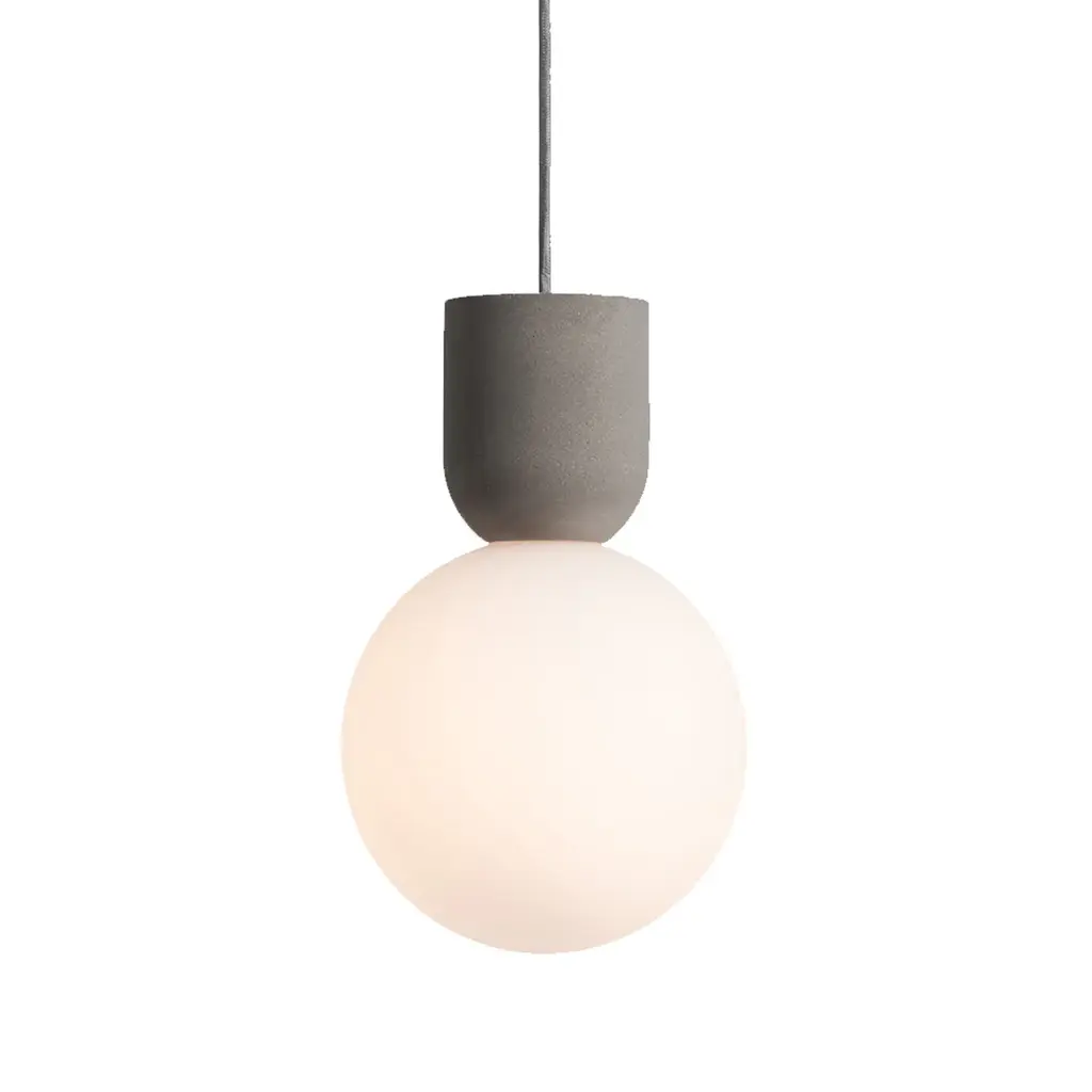 Create a bold statement in any room with the Castle Glo Pendant Light from Seed Design. With its concrete finish and smooth glass sphere, this minimalist design beautifully combines organic elements with a modern aesthetic. Available in two versatile sizes and featuring a dimmable design, this light is perfect for any interior from modern farmhouses to urban studios. Highlights