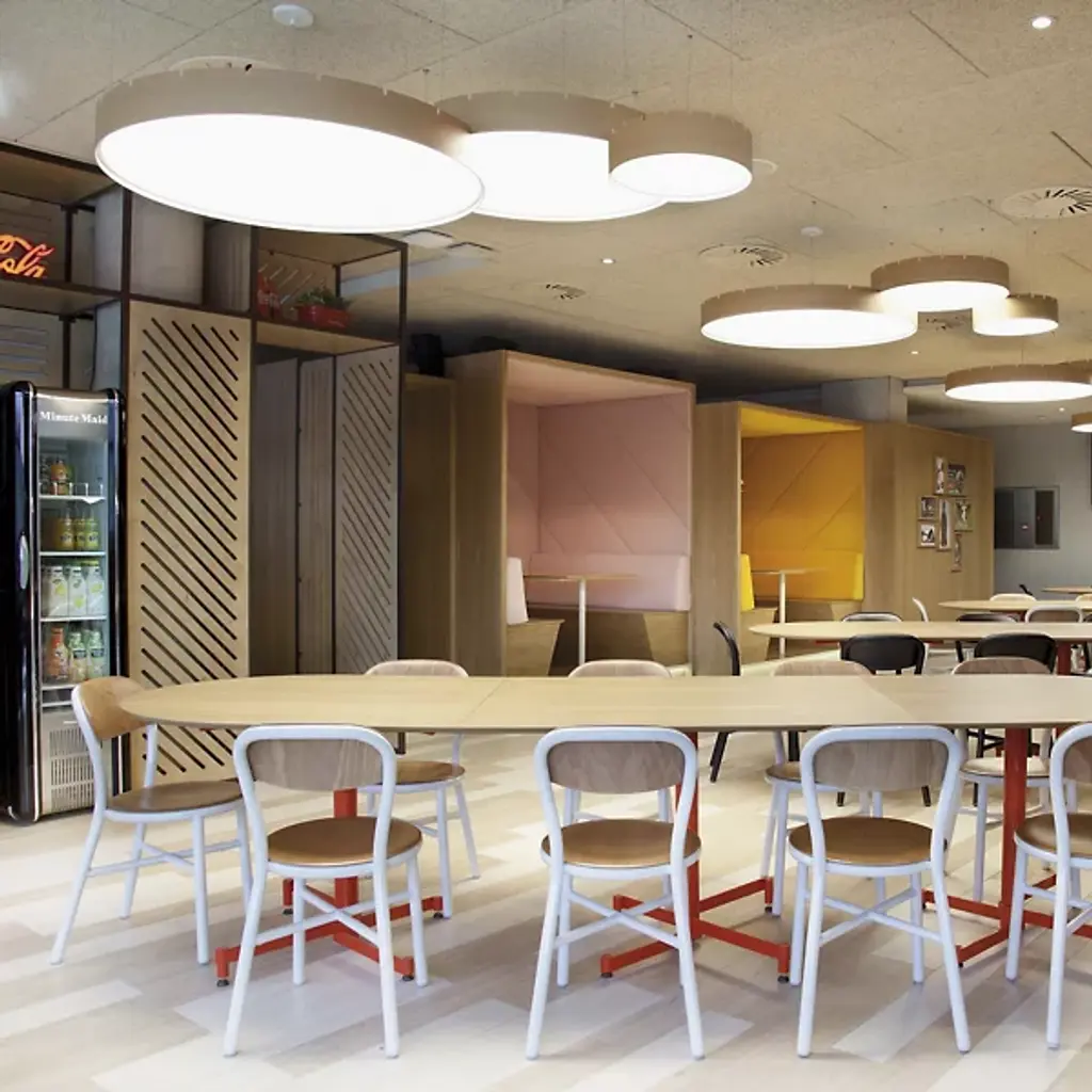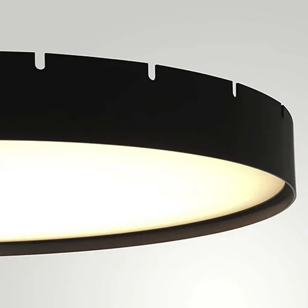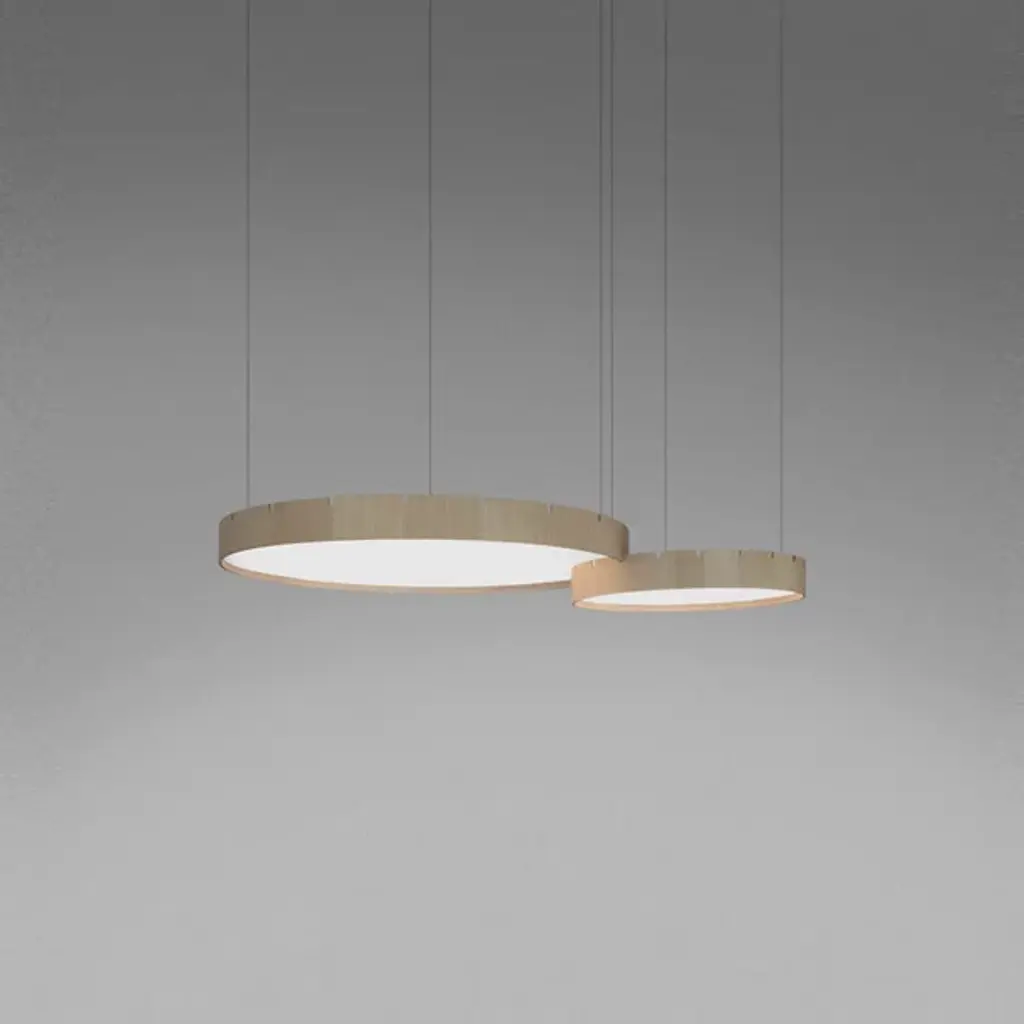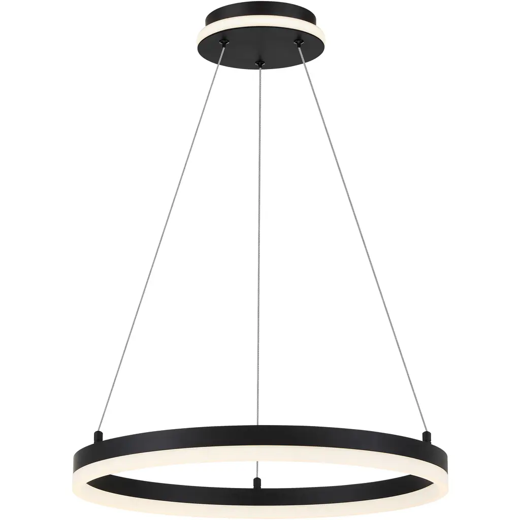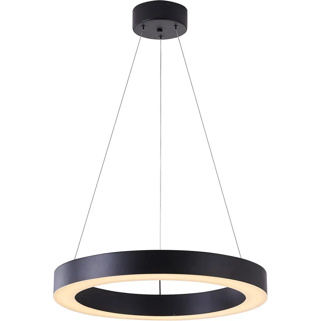 The Castle LED S Pendant from B.Lux offers a bright, appealing presence to large indoor ceilings. This sleek, simple offering descends from four small anchor points that secure a round aluminum housing below with fine cables, while a stepped canopy holds the pendant’s power cord. A circular diffuser of translucent PMMA is seated just inside the lower end of the housing, fronting the lamping, and transforming bright glare into a warm, even glow that extends below the fixture.
