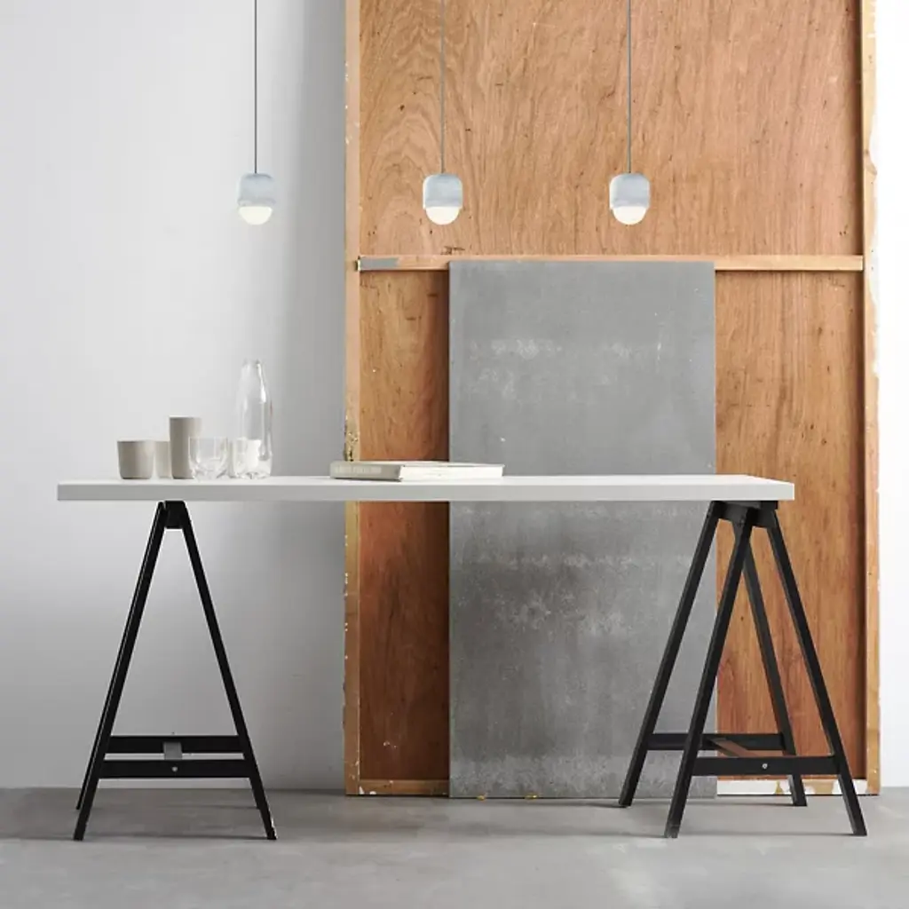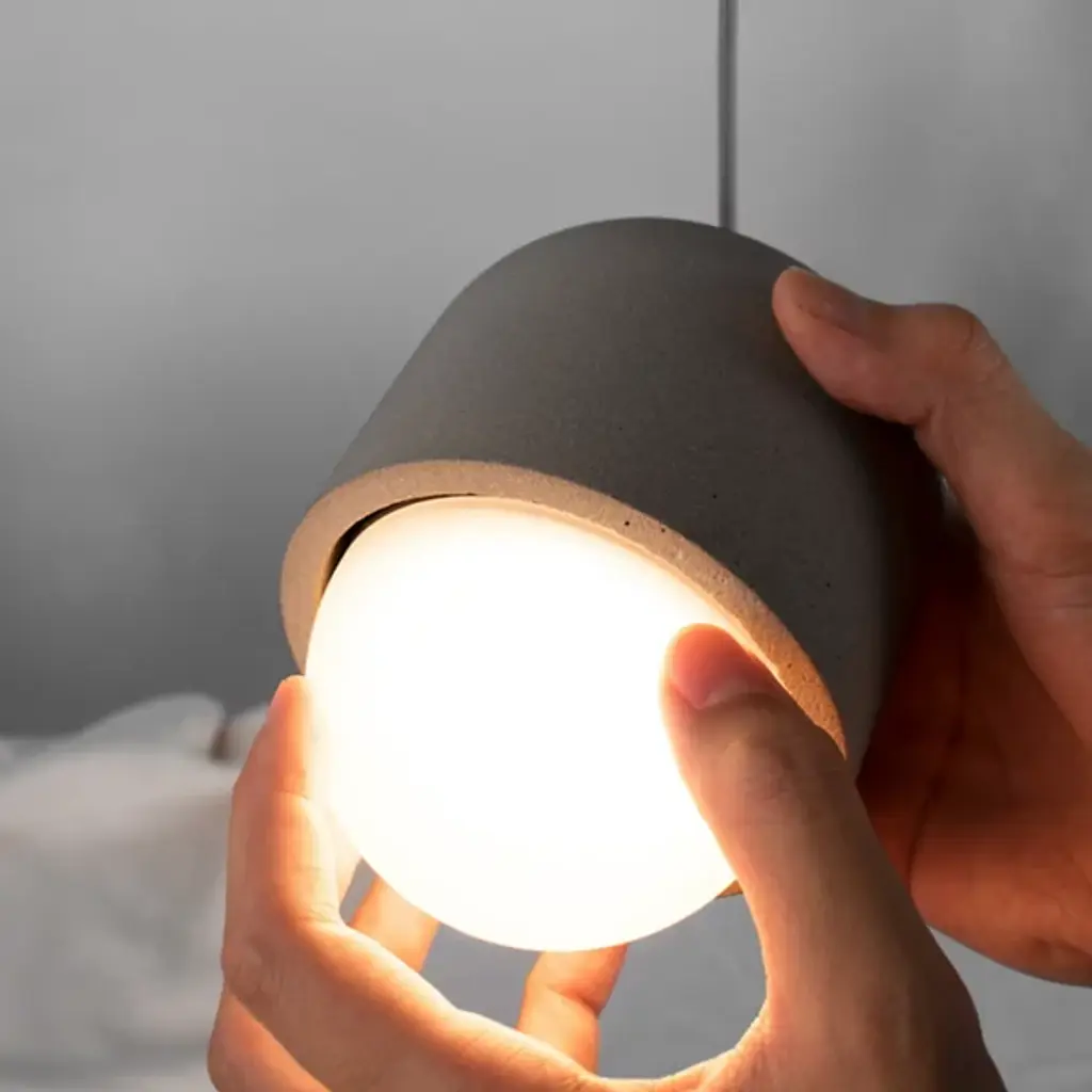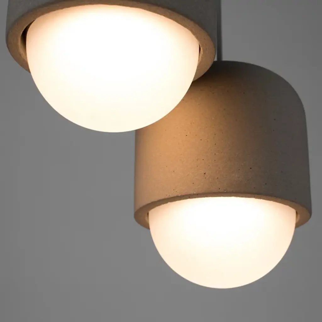 An earthy ensemble seasoned with an elegant design. The Castle Muse Mini Pendant by Seed Design is simple yet striking in form. This innovative pendant gets its name from Muses, the nine goddesses of Greek mythology signifying arts and science. Shaped from concrete, the bald frame envelops an opal glass lampshade that bears a close resemblance to a seed embedded within a fruit. Dangling from slender cables, this compact light fixture illuminates living spaces with a brilliant glow.