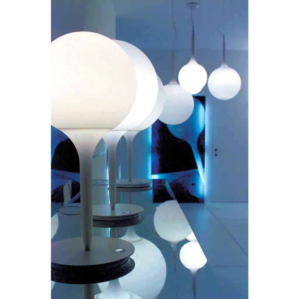 The Castore 35 pendant lamp by Artemide comprises a round, glowing globe and a tapering luminous stem, creating an impression of gradually dimming light. The shade is made of white, blown glass and the stem is slightly translucent plastic. The Castore collection was designed for Artemide by Michele De Lucchi and Huub Ubbens. Castore lamps will complement any space with their soft, pure white light. You can also combine different sizes and models into impressive compositions in larger spaces. Released in 2004, Castore lamps have won the Compasso d’oro Award, Reddot Design Award and Design Plus Light+Building Award.