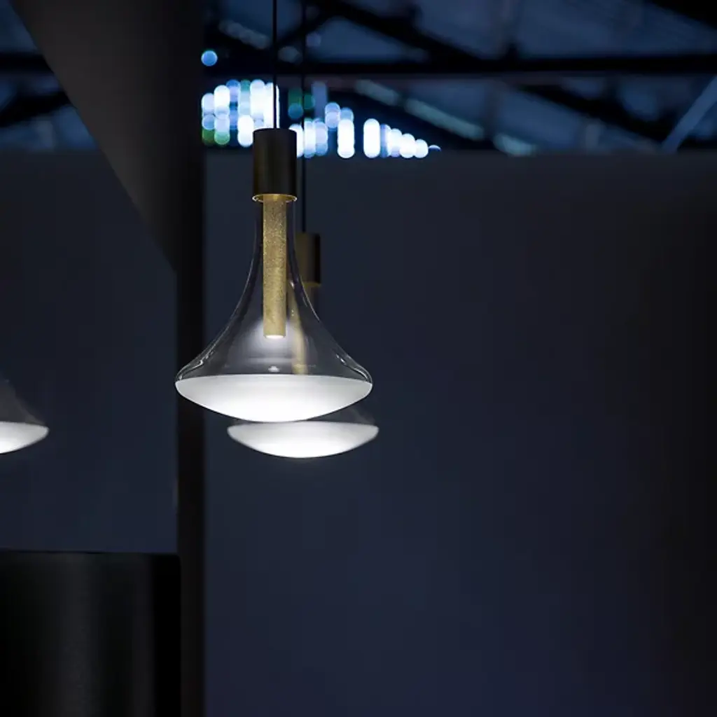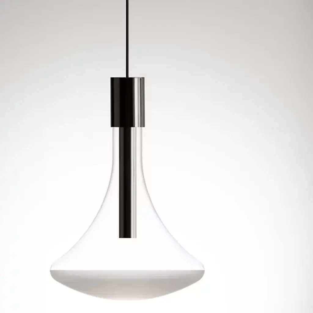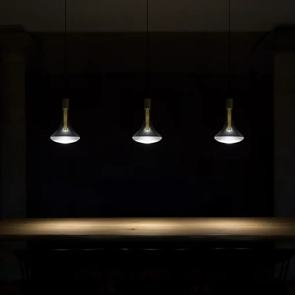 Illuminate your environment with the Cathode 1 LED Pendant from Davide Groppi. This pendant is designed by Omar Carraglia. Your pendant’s tapered, beaker-like silhouette brings a scientific sensibility to your living space. Fine metal crowns this Cathode’s lovely body of blown glass. From behind this glass is projected brilliant LED light, which enhances the visibility of your surroundings with ease. The Cathode 1 LED Pendant is secured by a ceiling canopy and is sloped ceiling adaptable, making this decorative piece highly versatile.