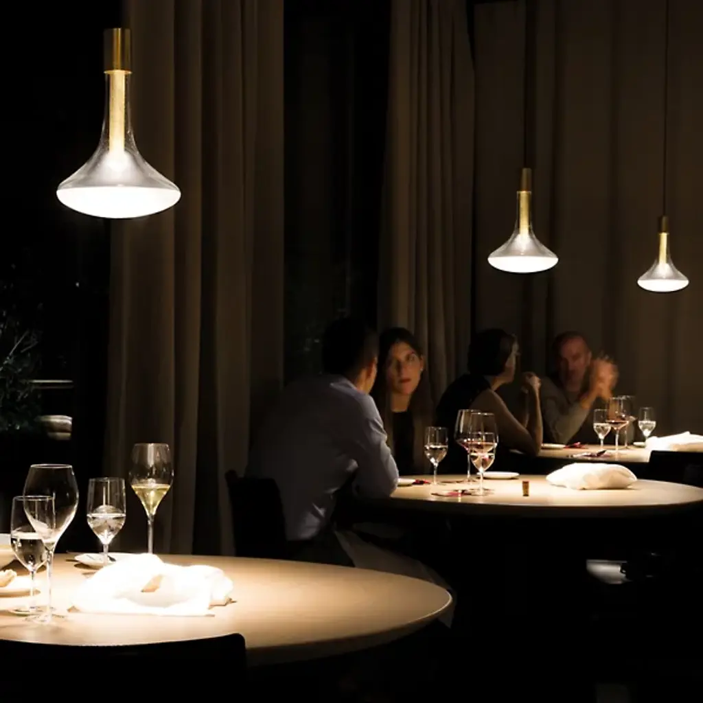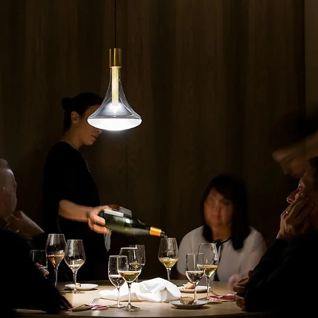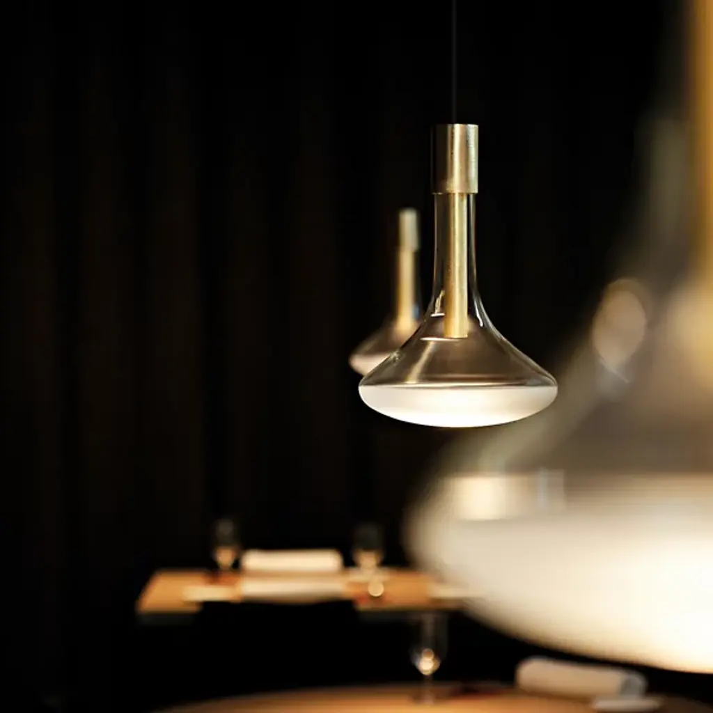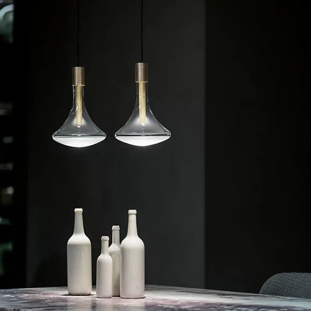 Illuminate your environment with the Cathode 1 LED Pendant from Davide Groppi. This pendant is designed by Omar Carraglia. Your pendant’s tapered, beaker-like silhouette brings a scientific sensibility to your living space. Fine metal crowns this Cathode’s lovely body of blown glass. From behind this glass is projected brilliant LED light, which enhances the visibility of your surroundings with ease. The Cathode 1 LED Pendant is secured by a ceiling canopy and is sloped ceiling adaptable, making this decorative piece highly versatile.