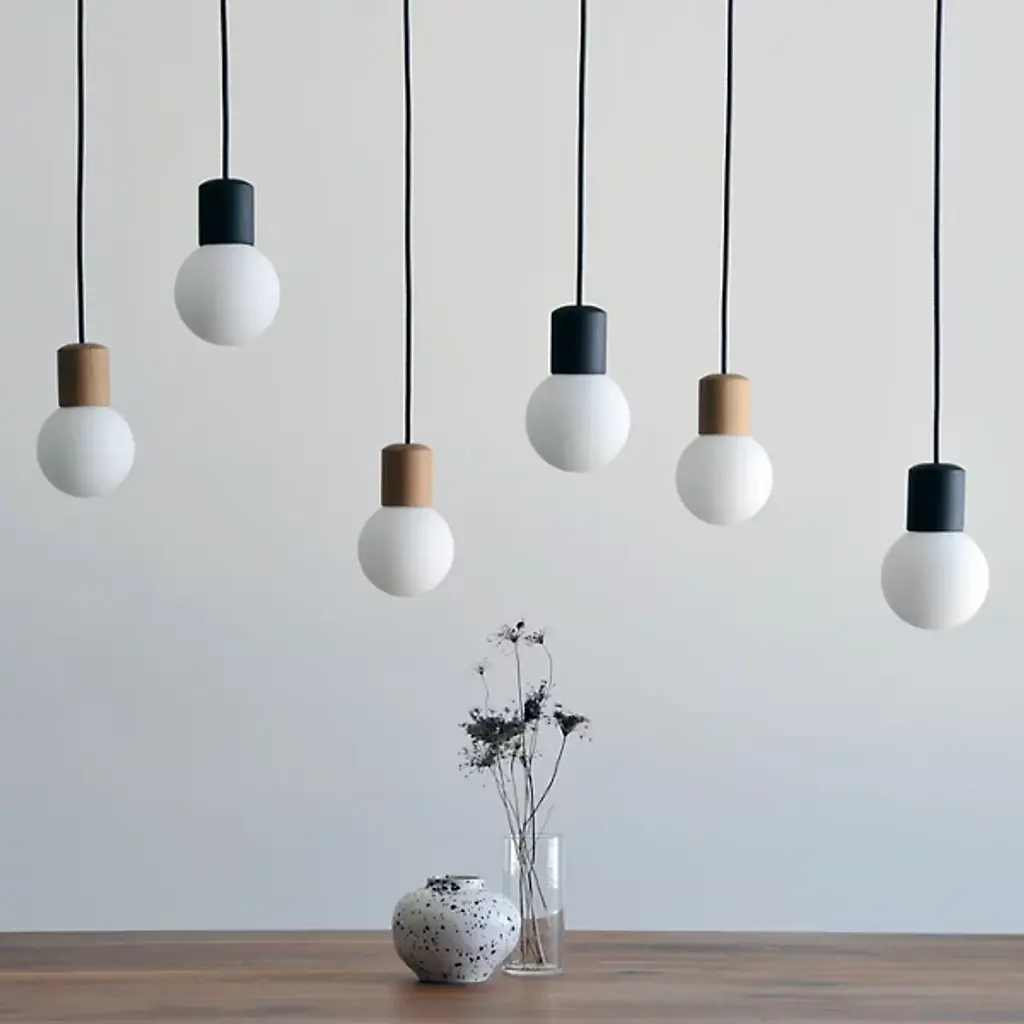 Wood, Glass and warmth combined to great effect. The Catkin Pendant by hollis+morris gives off a cozy vibe perfect for lighting up your room from above, both in terms of the light provides and the light, fun vibe it possesses. Its simple shades are made of Glass and crafted into sphere shapes, glowing warmly, ambiently and without glare through their Off White finished surfaces. The frames atop the shades are made of Wood and crafted into cylindrical shapes with a round top, adding whimsy and lightness to this understated piece.