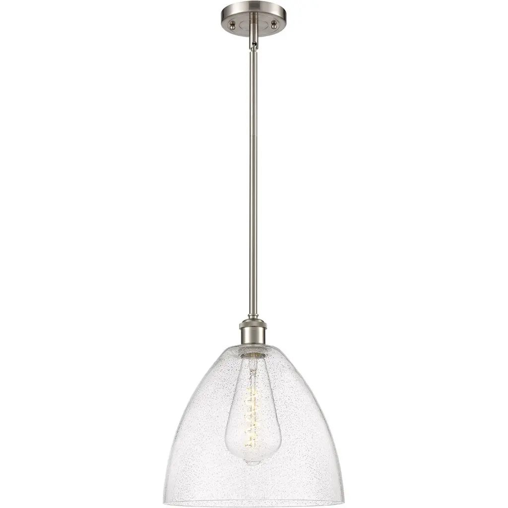 Meet the pendant light that brightens up your day and your decor. Crafted from steel in your choice of metallic finish, this cone-shaped piece features a minimal look we love. The sleek adjustable downrod and clear glass shade make it work with a wide range of aesthetics. Plus, this light works with a dimmer switch, letting you control the vibe, from quiet breakfasts to lively dinner parties. Style tip: Try installing this pendant solo above your dining table or in pairs above your kitchen island for a curated look.
