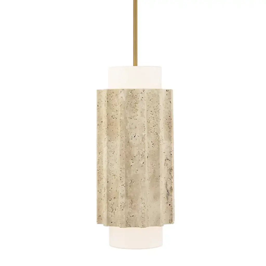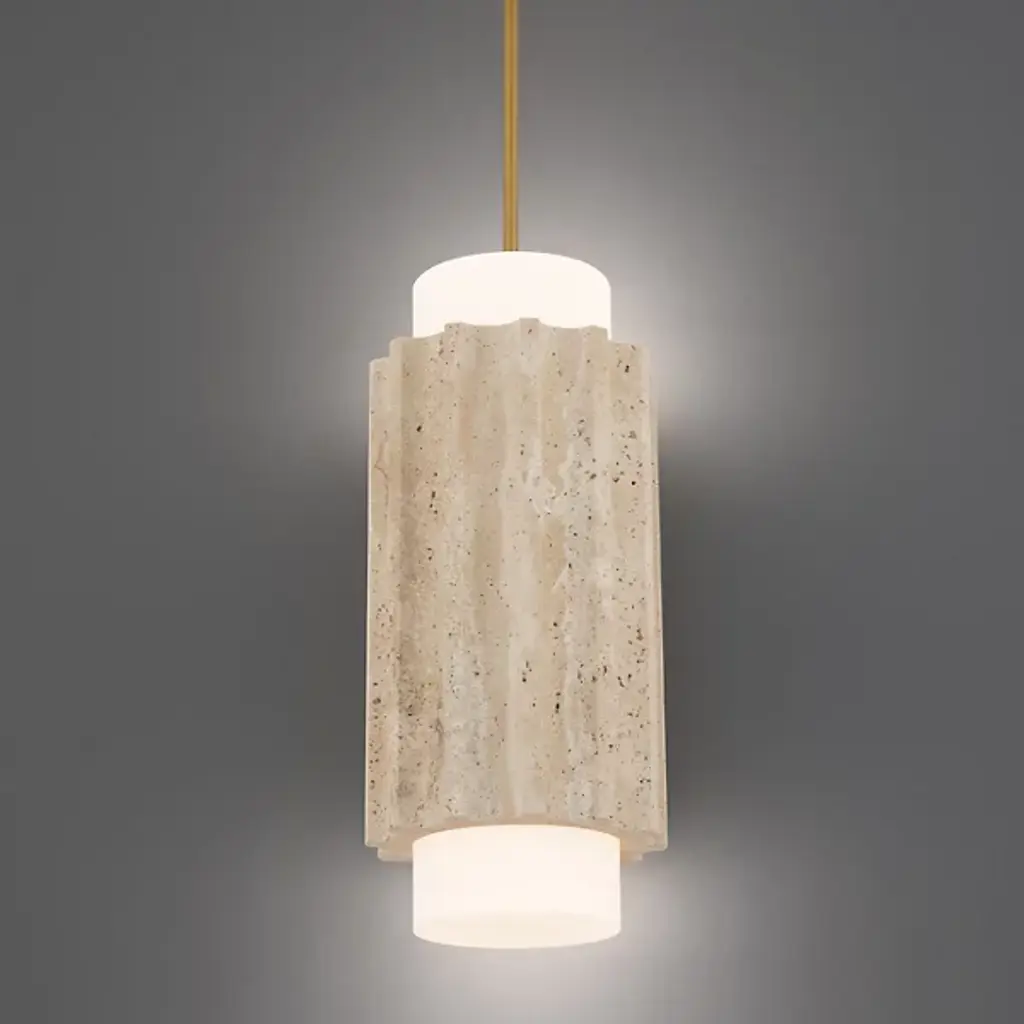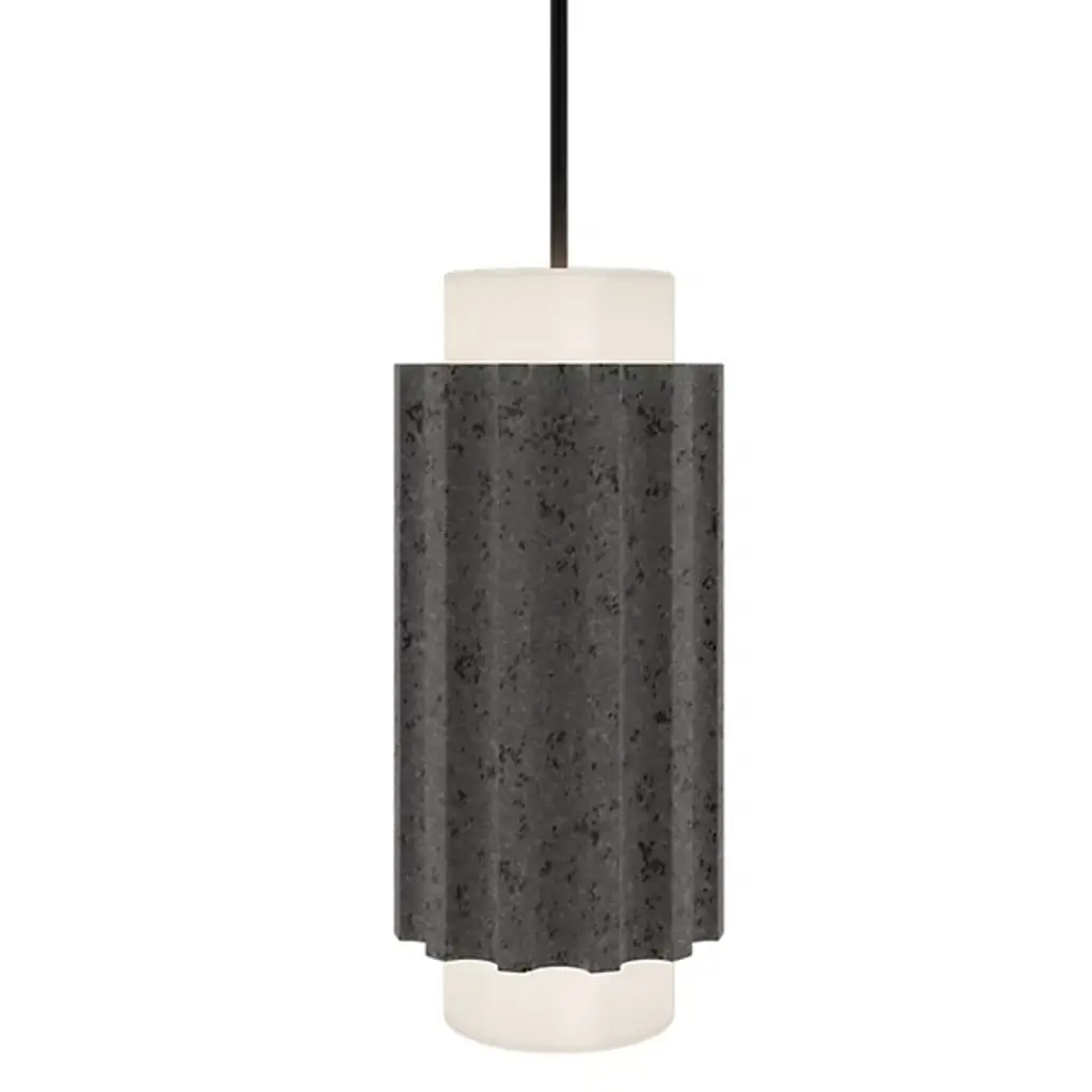 The Caviar LED Mini Pendant from Modern Forms wraps fluted natural stone around an etched opal glass core, creating rich textural contrast between the carved stone exterior and smooth glass interior. The column design enables dual illumination from both top and bottom openings, while the stone's natural patterns add depth and visual interest. Selectable color temperature technology provides four lighting options via canopy controls, enabling customization to suit various spaces and moods. The stone material brings organic warmth to contemporary interiors, with each piece displaying unique characteristics.