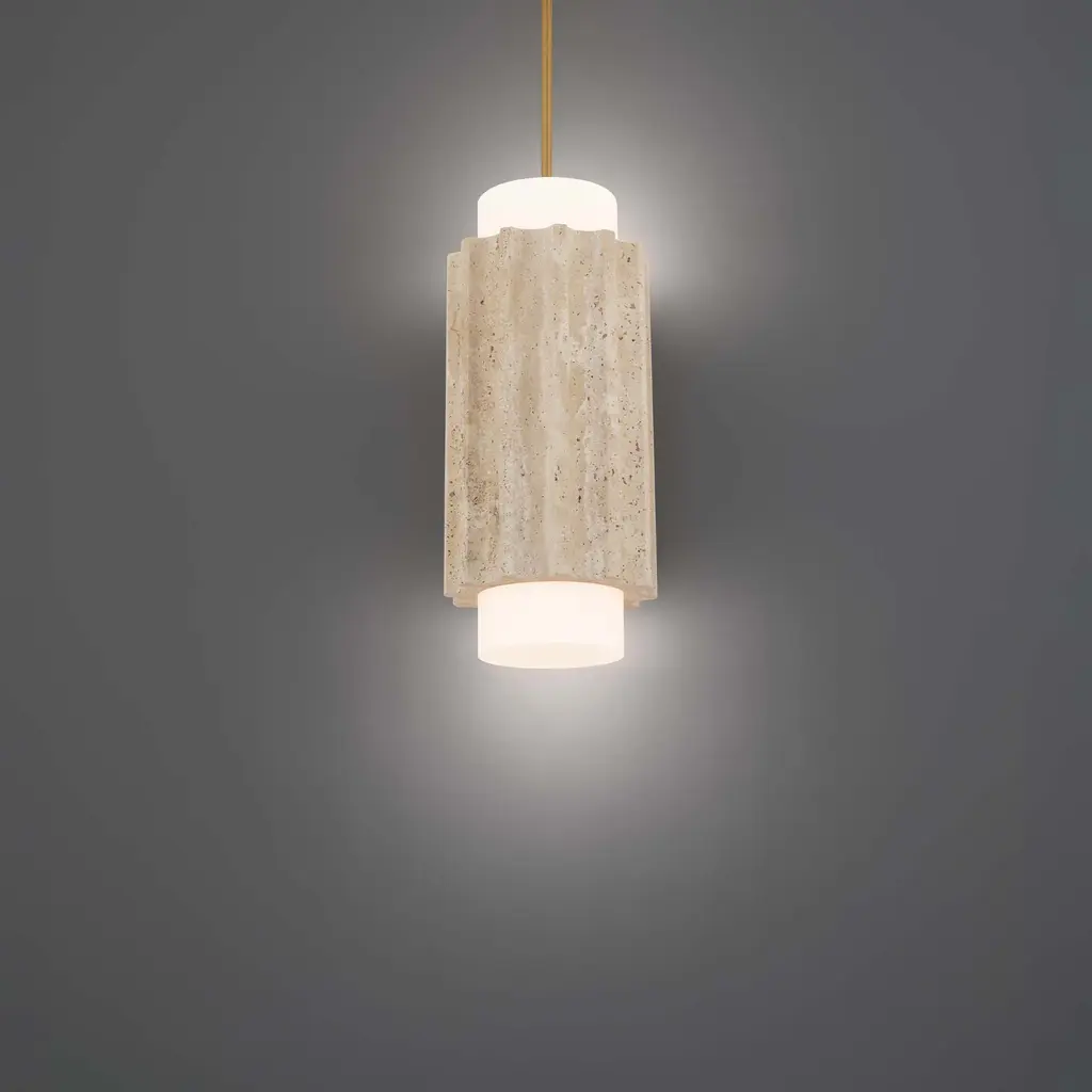 Prized for its subtle richness and texture, the Caviar LED Pendant Light from Modern Forms is a study in natural, sculptural beauty. This elegant pendant features an etched opal glass shade surrounded by a beautiful fluted column of natural stone. The unique design offers bi-directional light, with color-temperature-selectable LEDs casting a soft glow from both the top and bottom. The natural variations in the stone's veining make each piece a one-of-a-kind, sophisticated and luxurious centerpiece. Highlights: